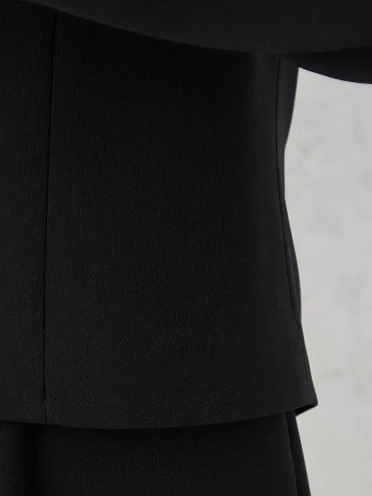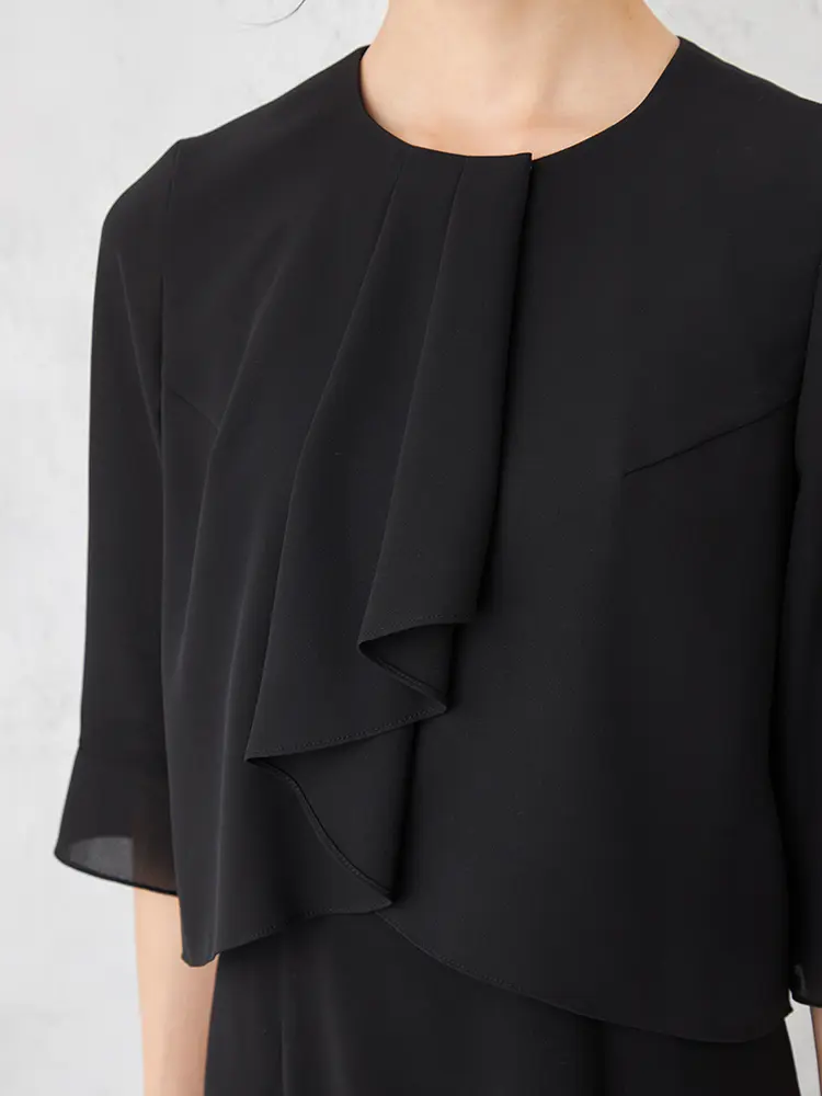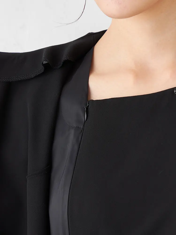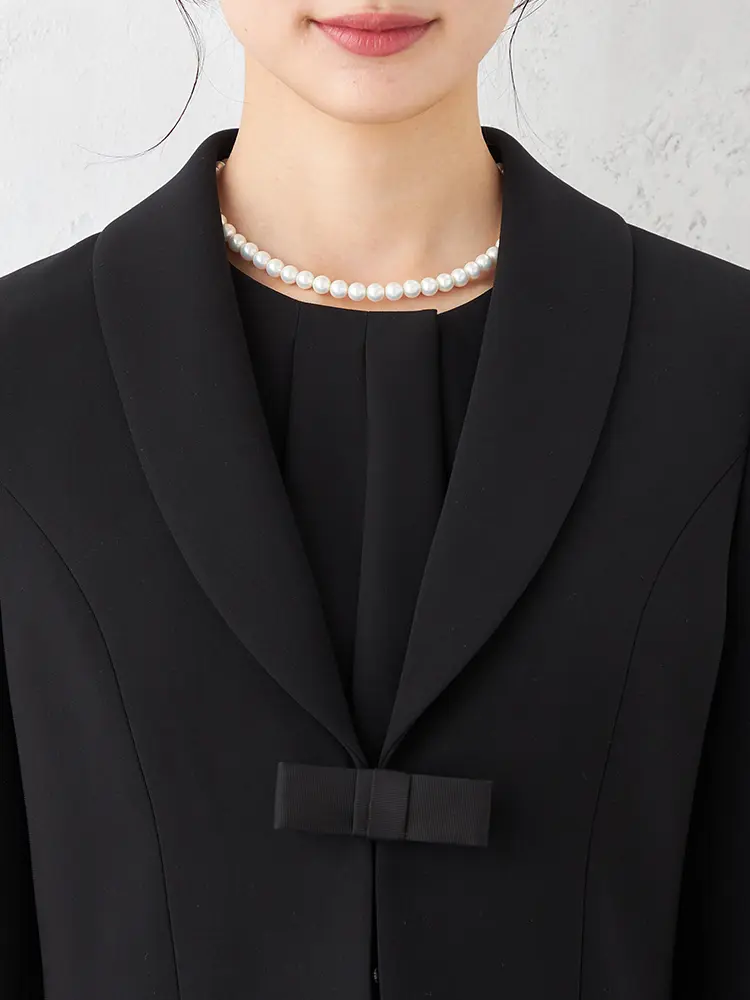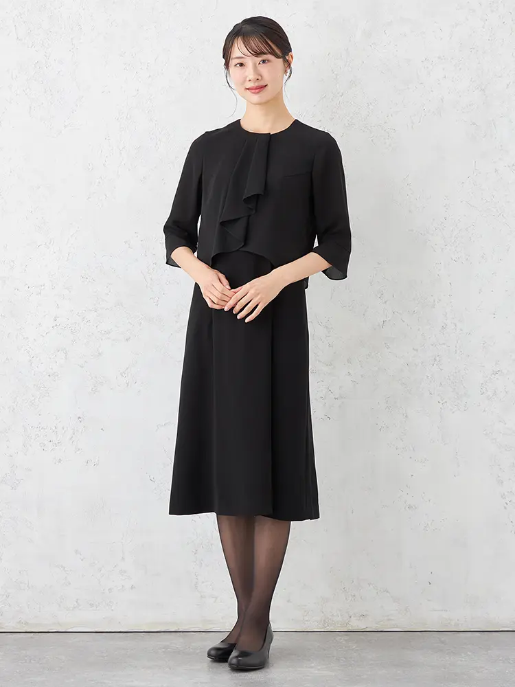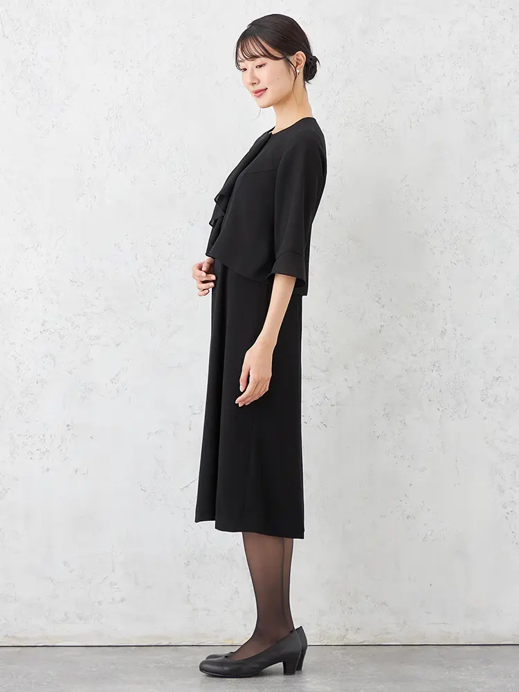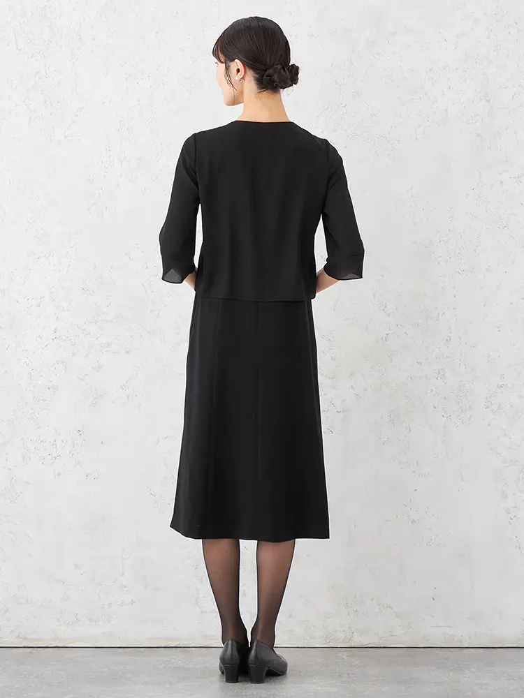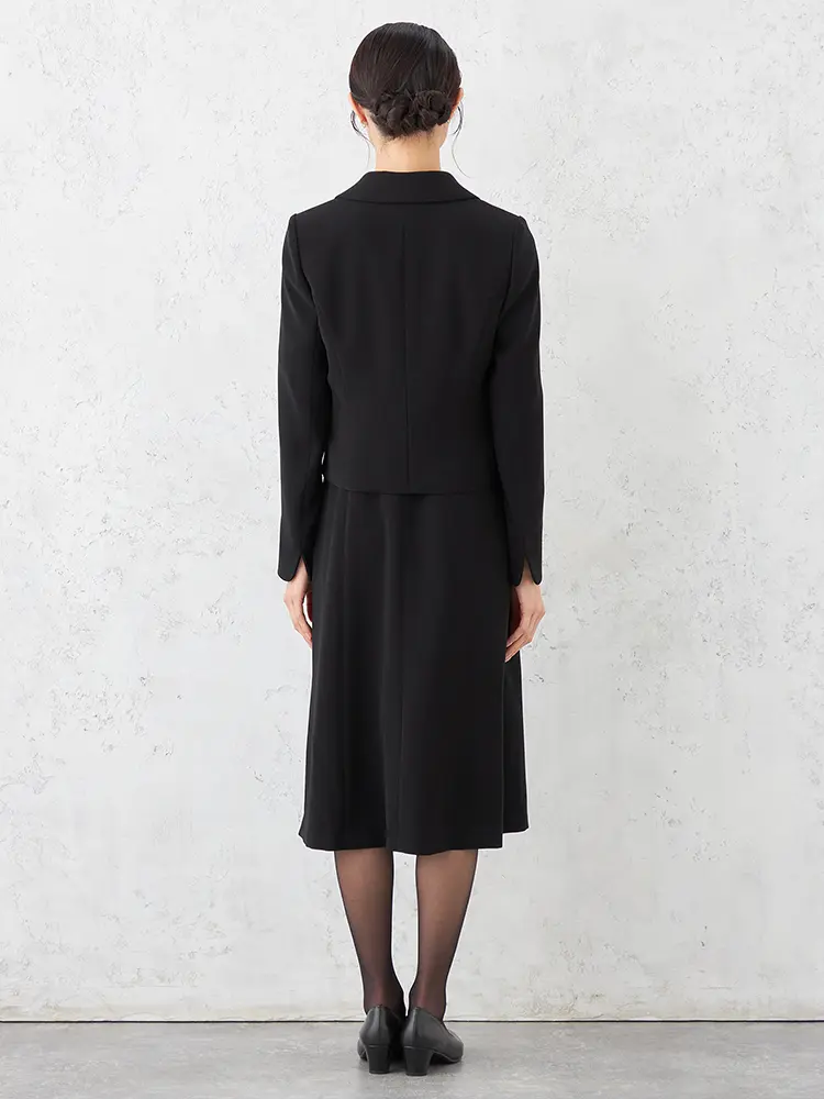 【即納】【WEB限定フォーマル】ロールカラーアンサンブルジャケット/ワンピース黒無地通年礼服【レディース】