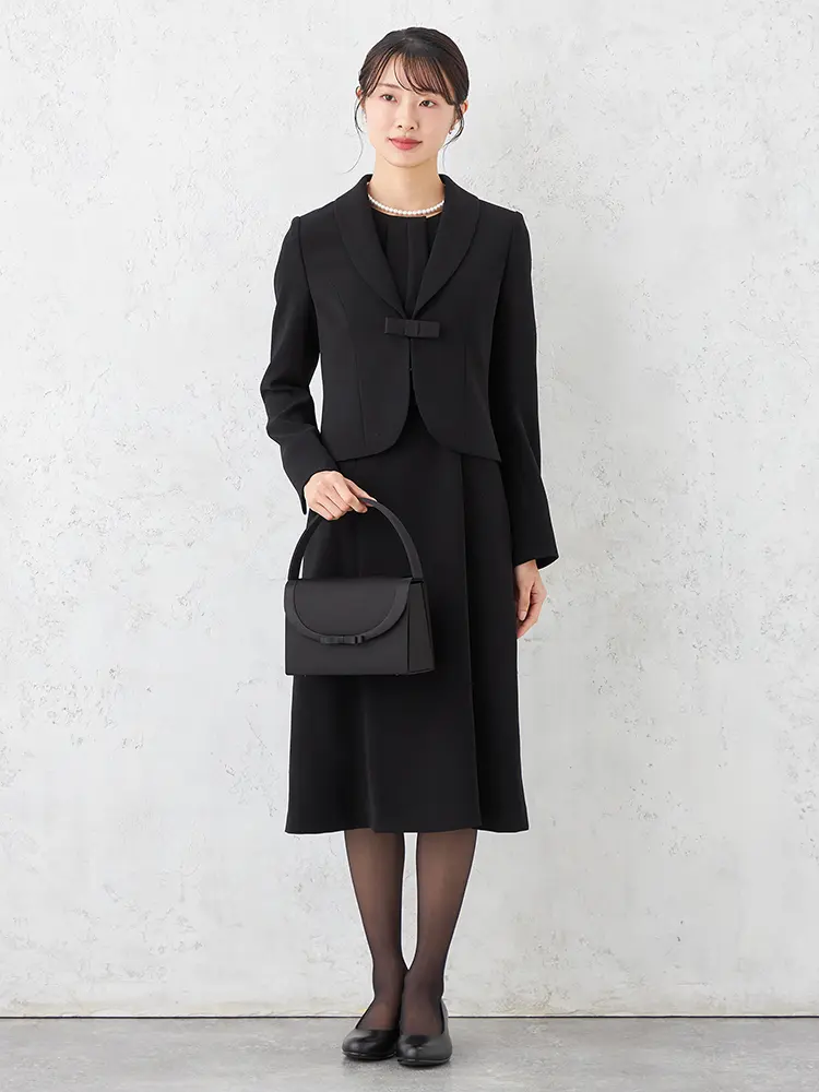 【即納】【WEB限定フォーマル】ショールカラーアンサンブルジャケット/ワンピース黒無地通年礼服【レディース】