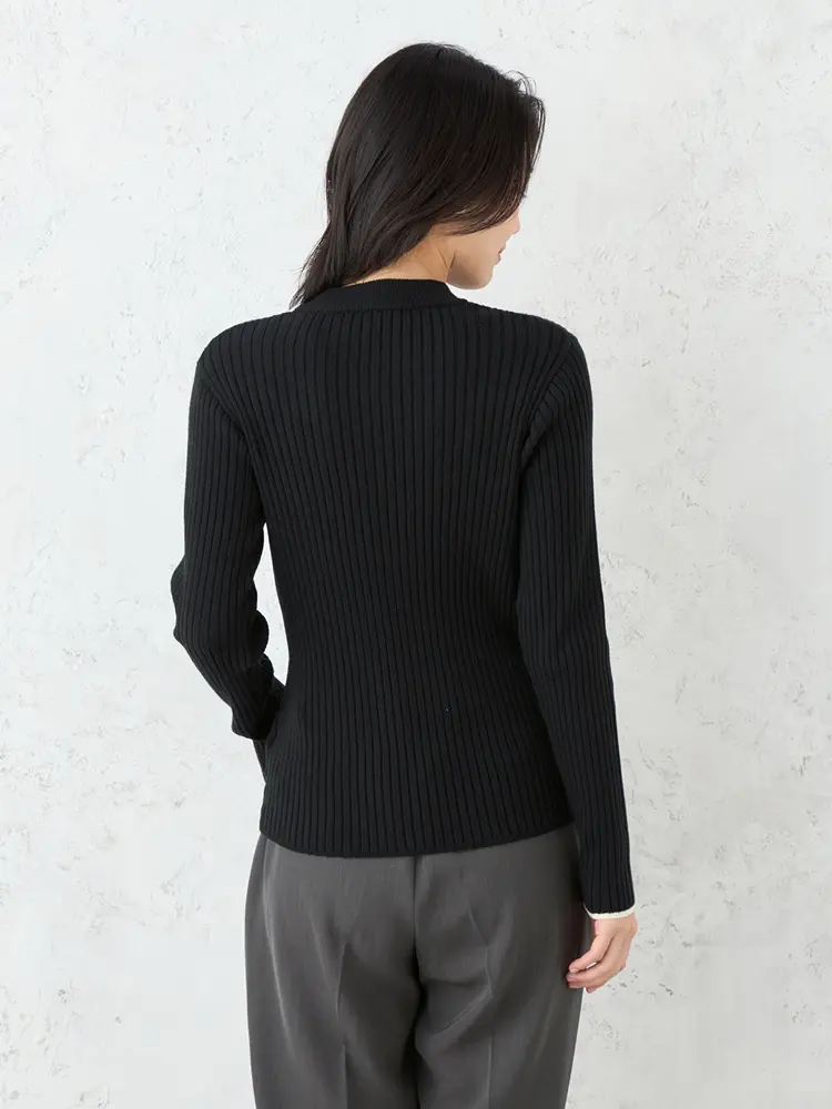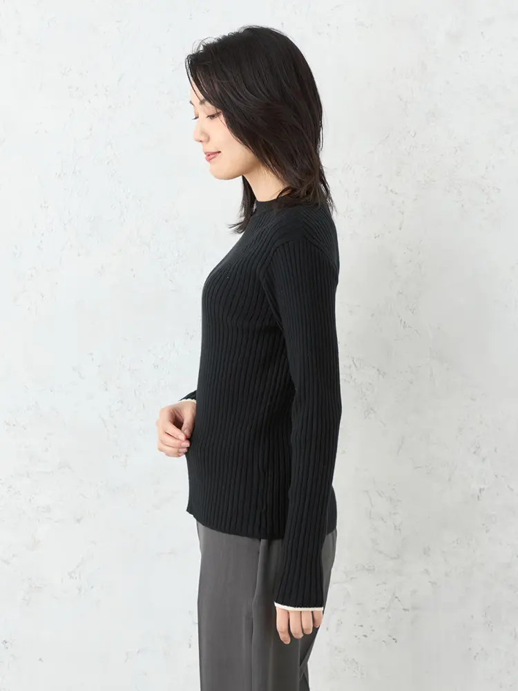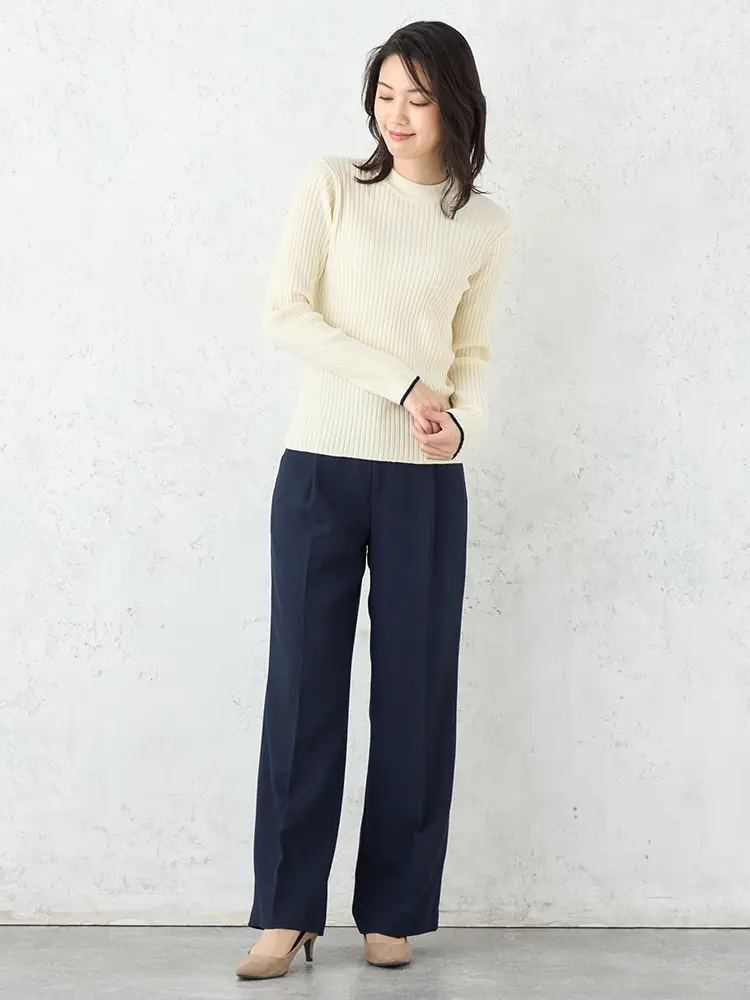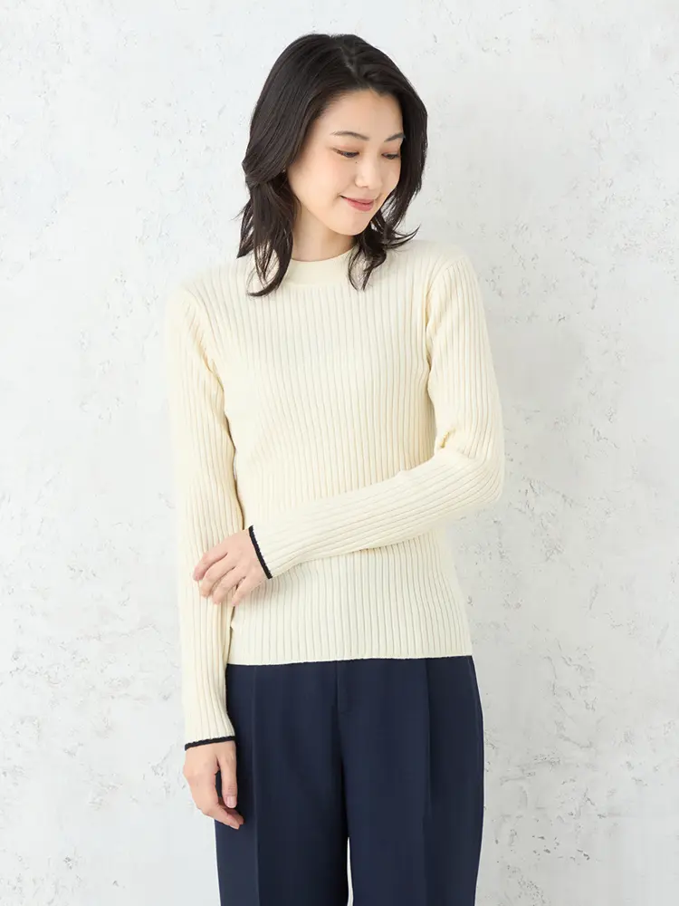 【SOFFICE】抗ピル配色ラインハイネックリブニット カットソー ウォッシャブル 放電 抗ピリング 秋冬 【レディース】(クリーム)