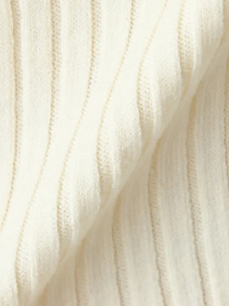オフシーンでも着用可能なカジュアル感あるワイドリブ仕様で、袖口の配色ラインがアクセント。