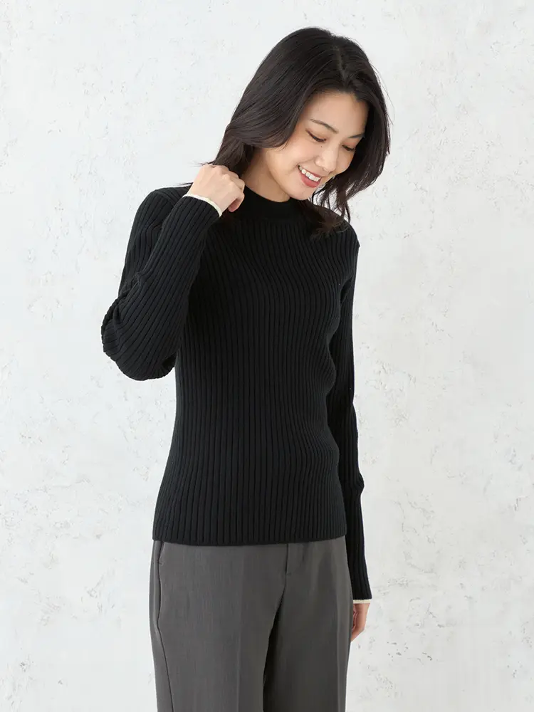 【INDIVI】ワイドリブタートルネックニットウォッシャブルデオドラント無地秋冬【レディース】