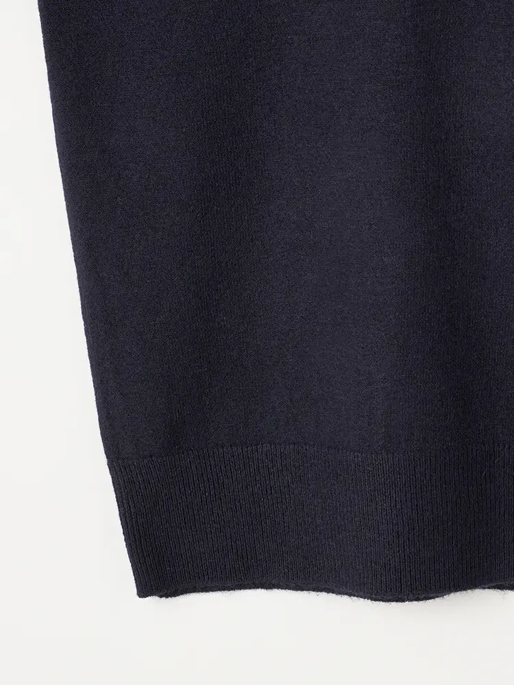 チクチクしにくい柔らかで滑らかなカシミアタッチニットを使用した着心地の良い一枚。