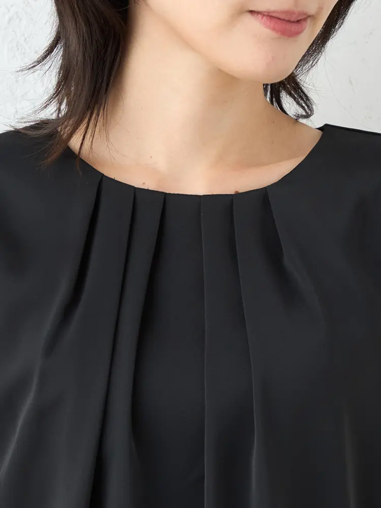【SOFFICE】2枚仕立てフロントタックブラウス カットソー 長袖プルオーバー ソフィーチェ 消臭加工 ウォッシャブル 通年 【レディース】(ブラック)