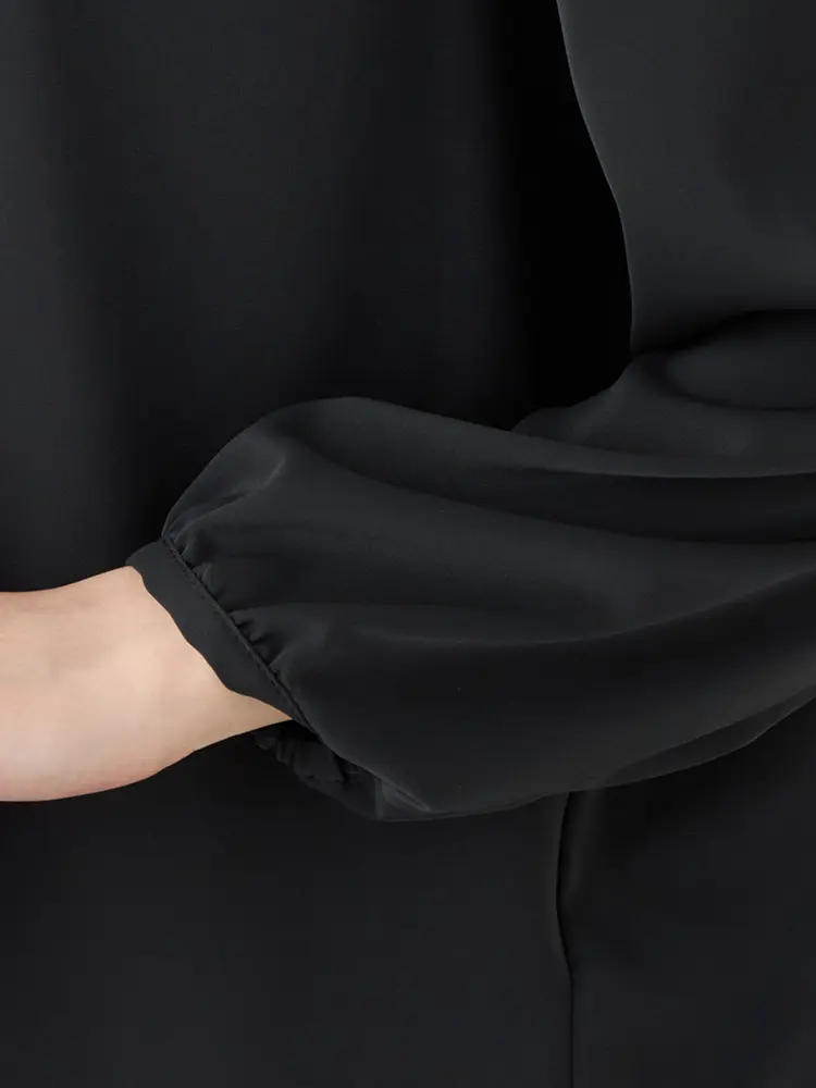 袖口のバルーンデザインが女性らしく柔らかな印象を演出し、オフィスからセレモニーまで幅広く活躍します。
