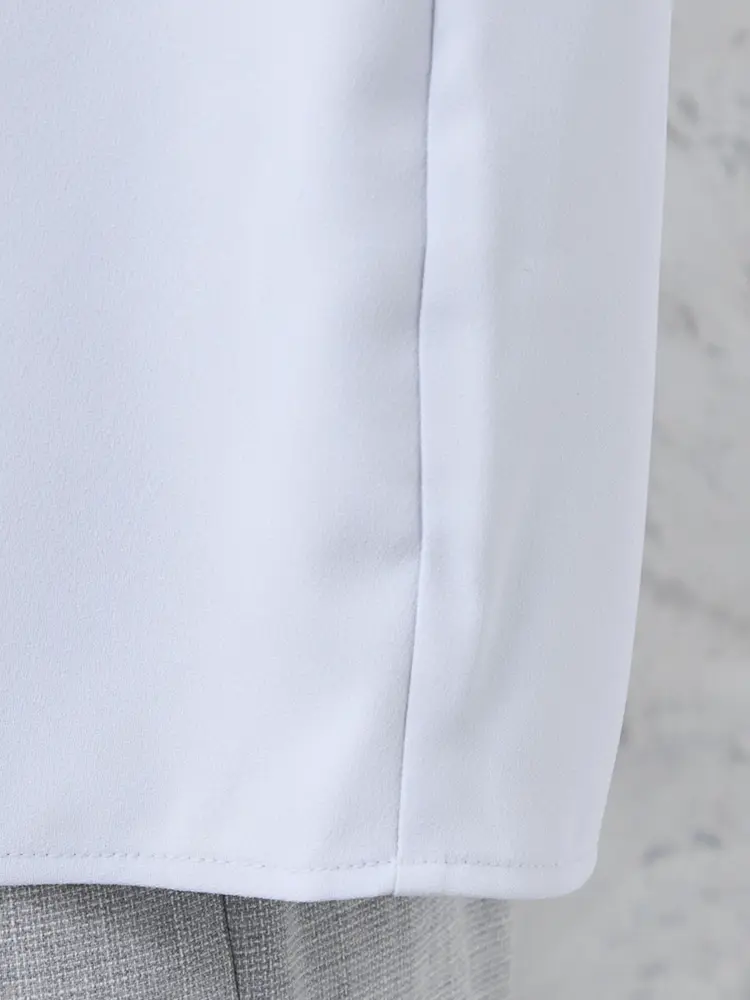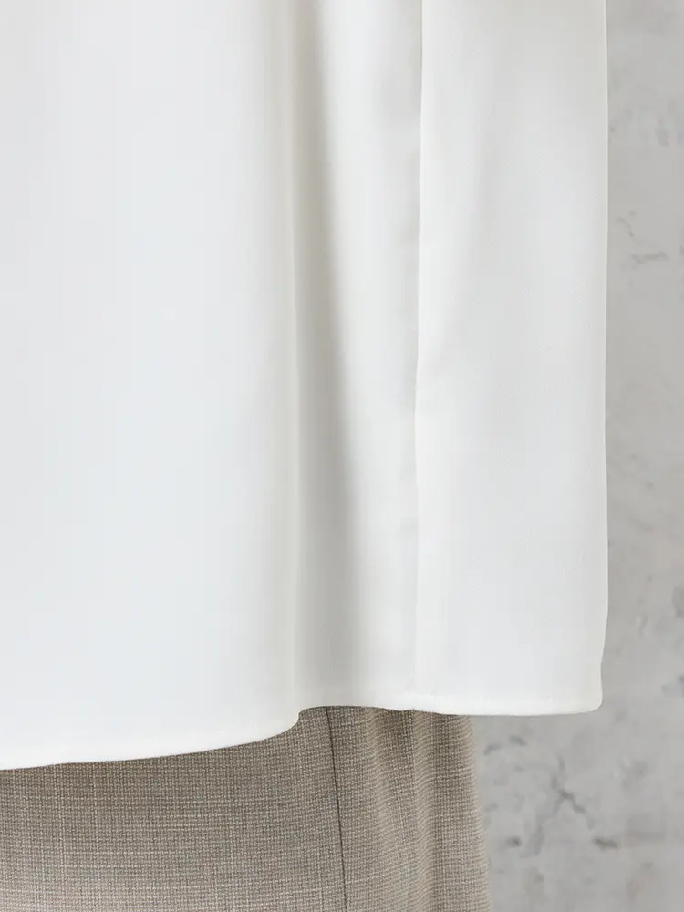 ジャケットのインナーに最適なシンプルなデザイン。衿元のタックデザインがポイントです。