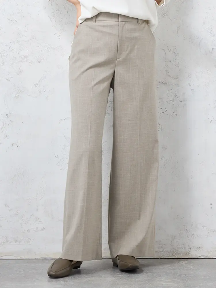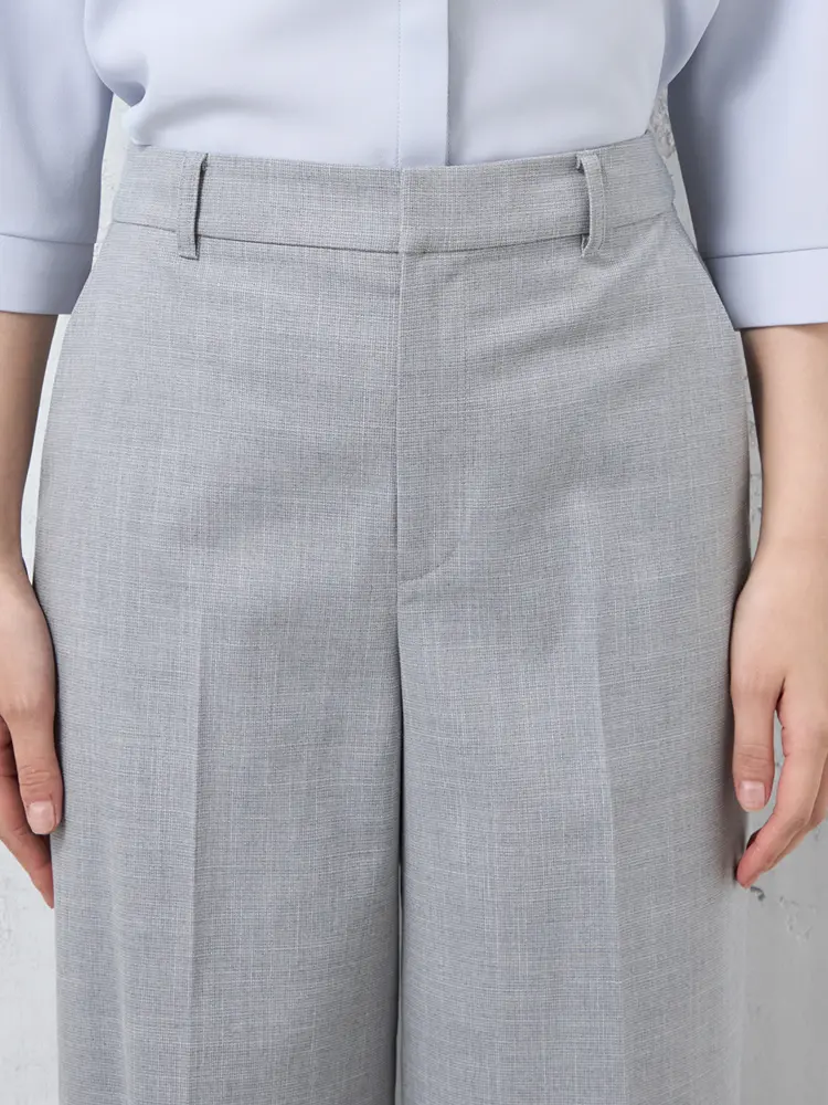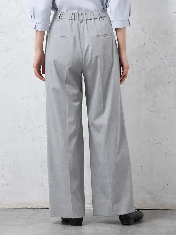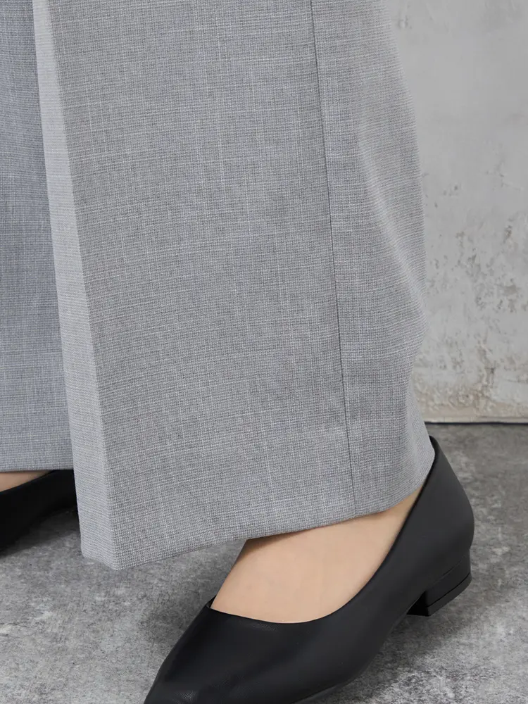 ツイード素材の華やかさと、楽な穿き心地を両立したノータックのワイドパンツです。