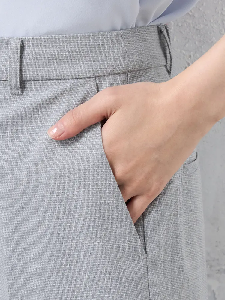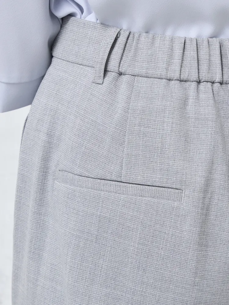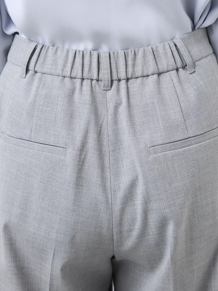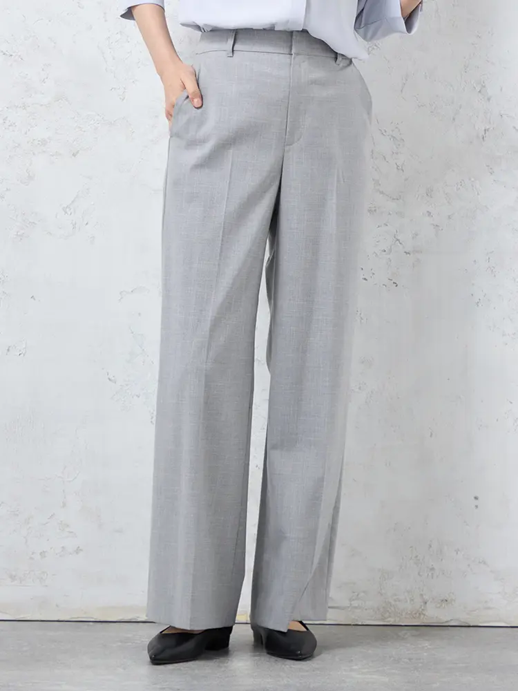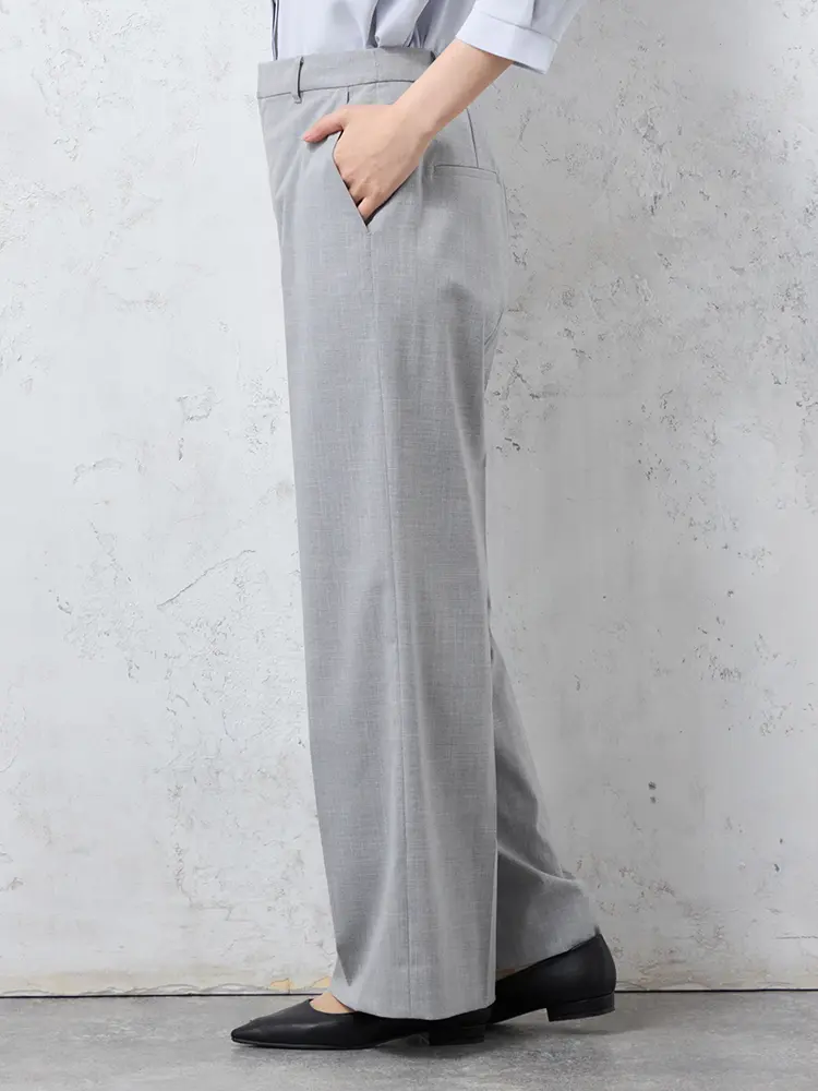 ツイード素材の華やかさと、楽な穿き心地を両立したノータックのワイドパンツです。