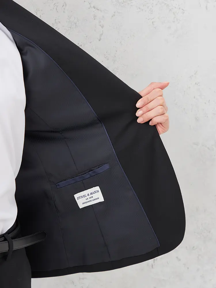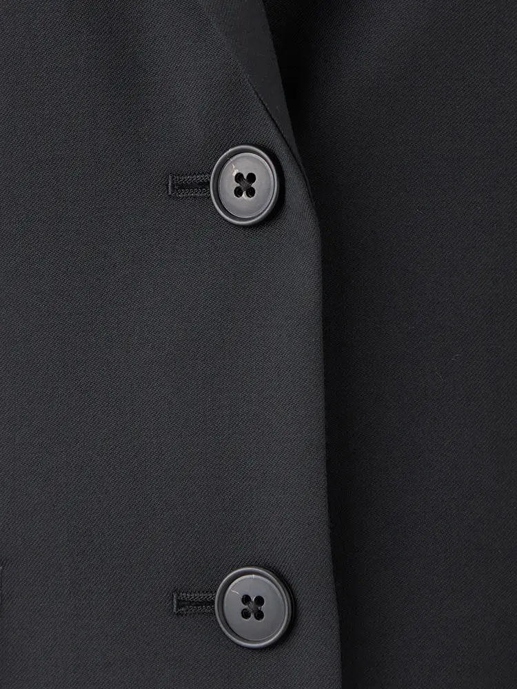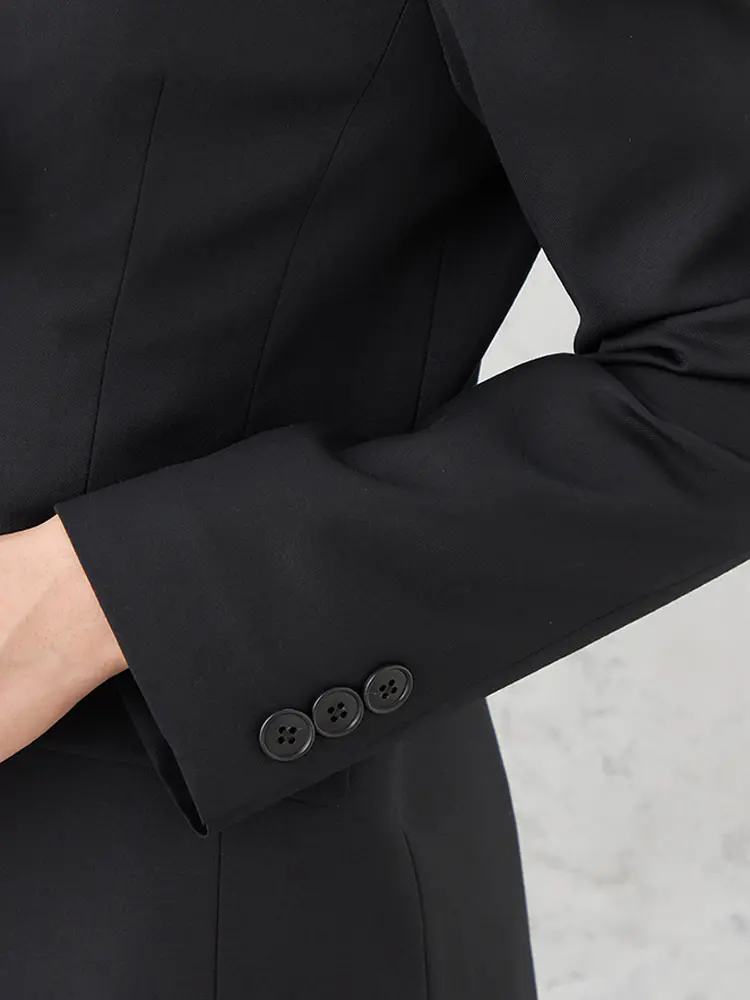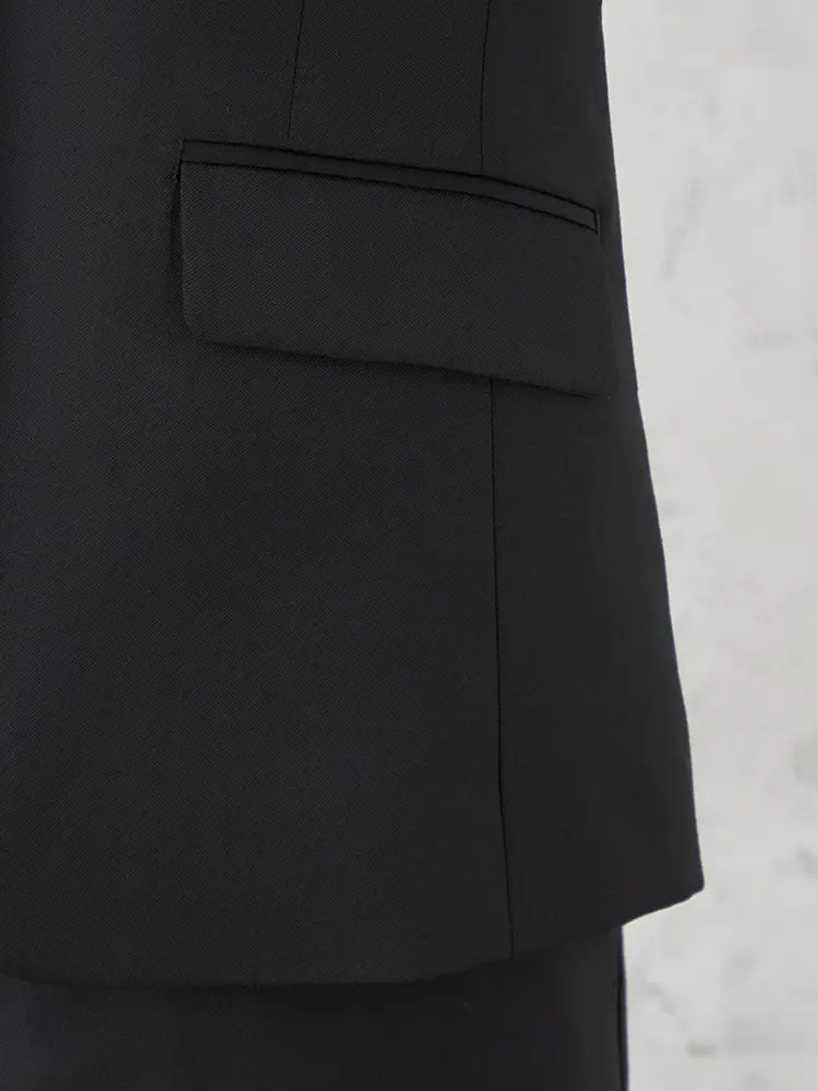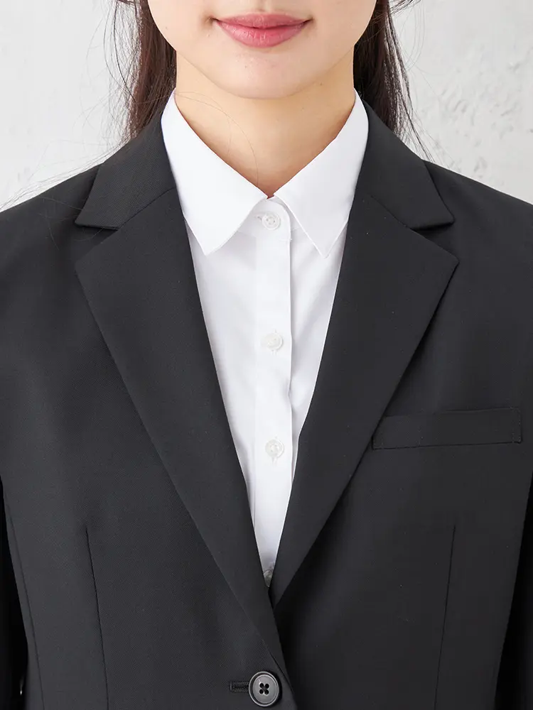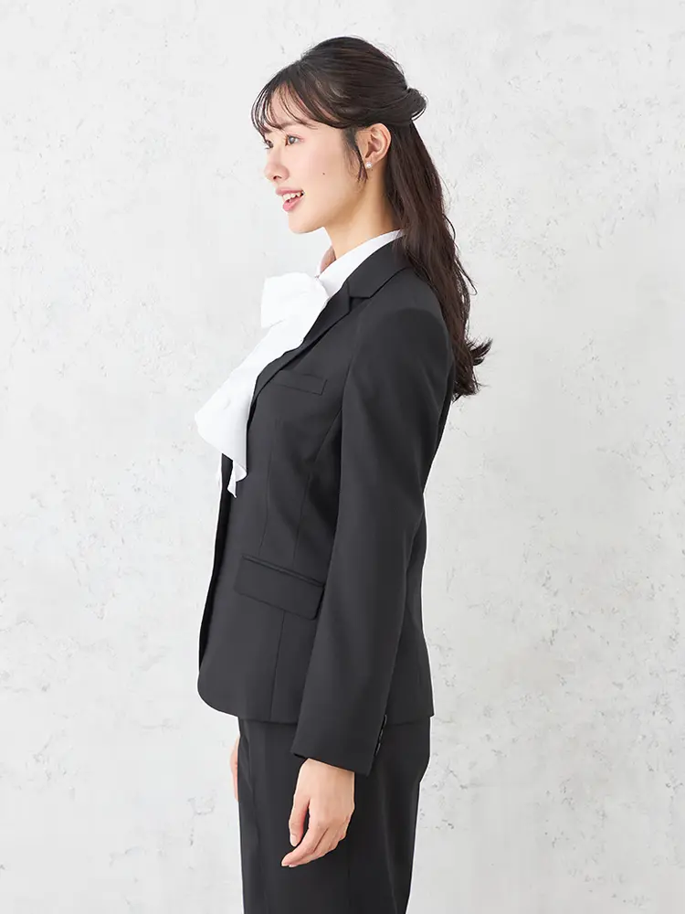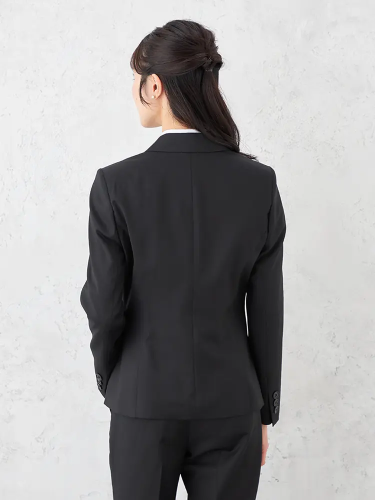 背抜き・ノーベント仕様で、フリル等のインナーも映えるスッキリとした佇まいです。