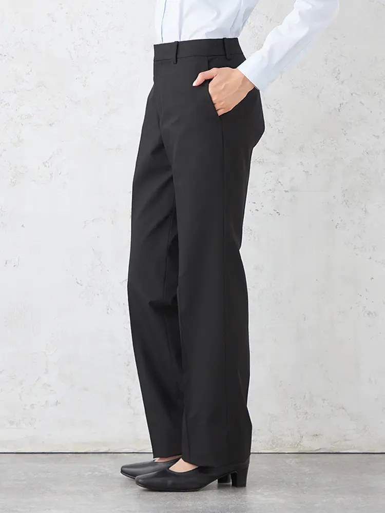 【ウォッシャブル】ウィメンズフルレングスパンツストレッチSOFFICEブラック無地通年【レディース】