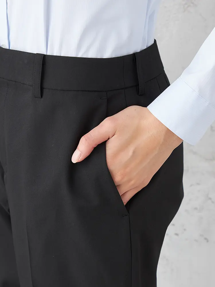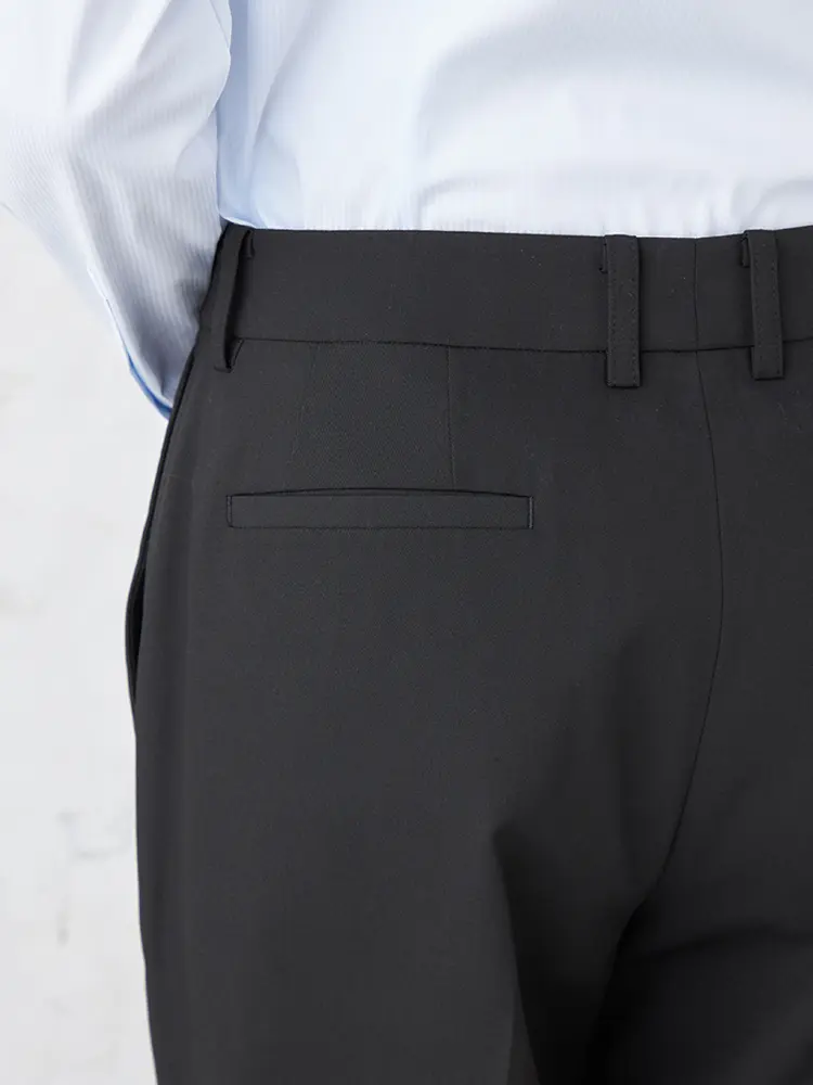 ノータックの腰回りとセンタープレスで、すっきりスタイリッシュに仕上げました。