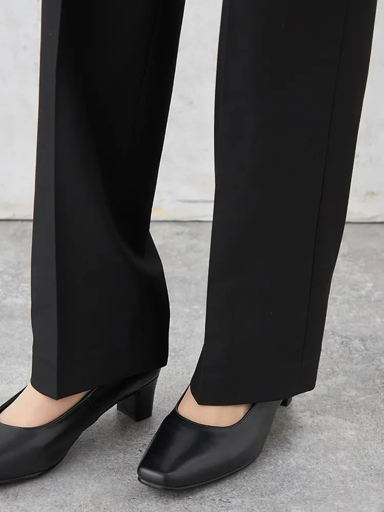 【SOFFICE】 ポリエステル レーヨン 黒無地 ストレートパンツ ソフィーチェ ウォッシャブル ストレッチ 通年