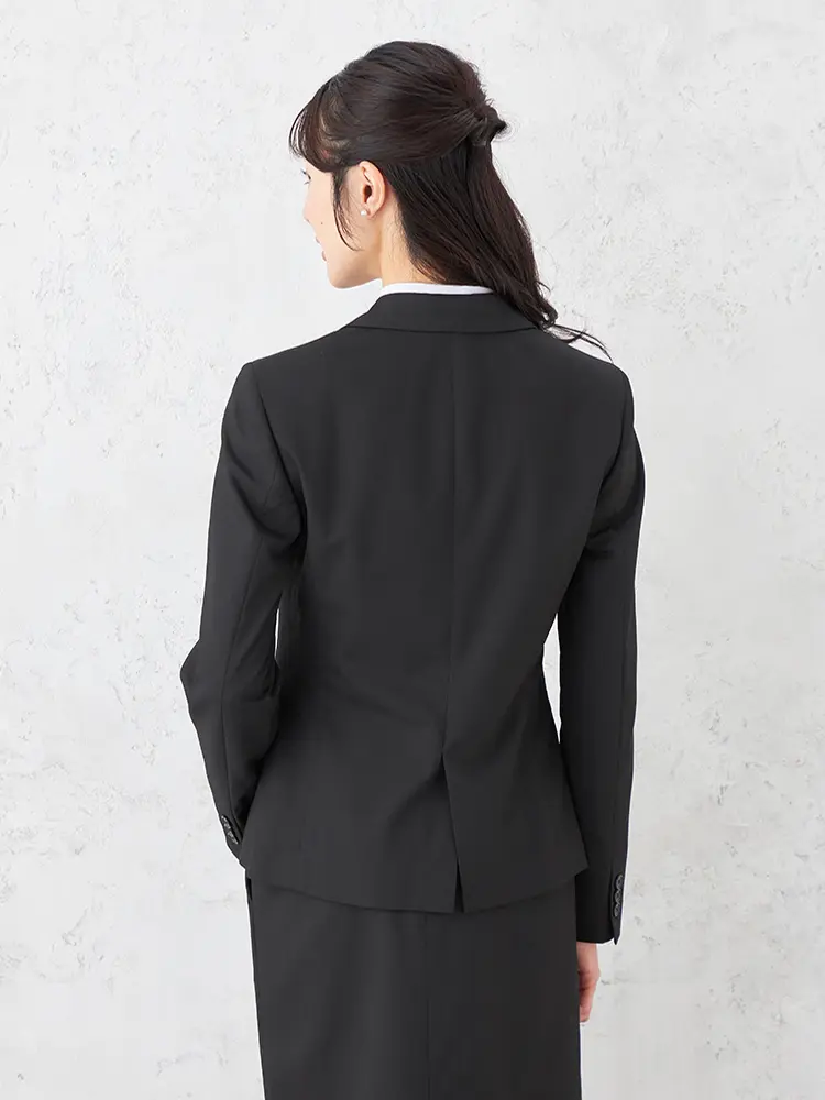 【SOFFICE】 ポリエステル レーヨン 黒無地 2つボタン ジャケット ウォッシャブル ストレッチ 通年