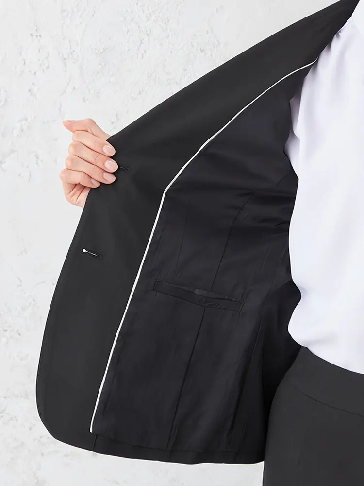 背抜き仕立ての軽やかな着心地で、動きやすさと機能的な内ポケットも備えました。