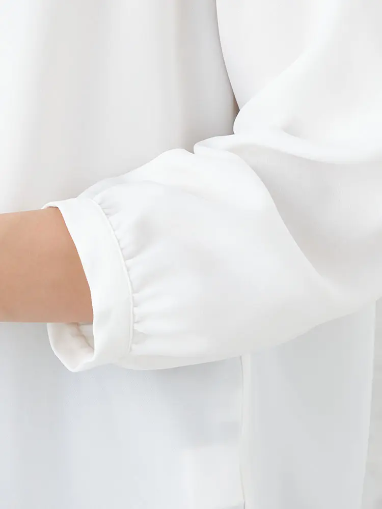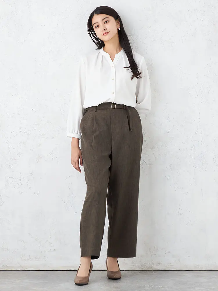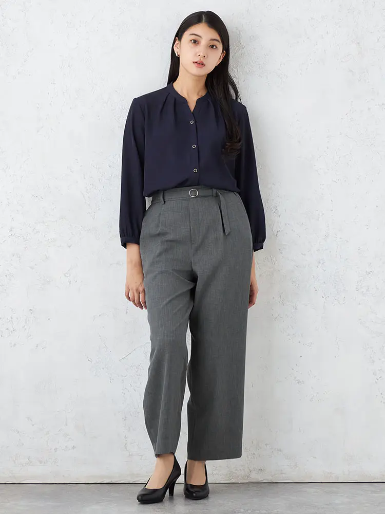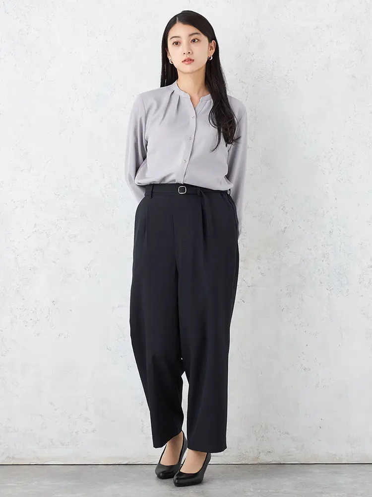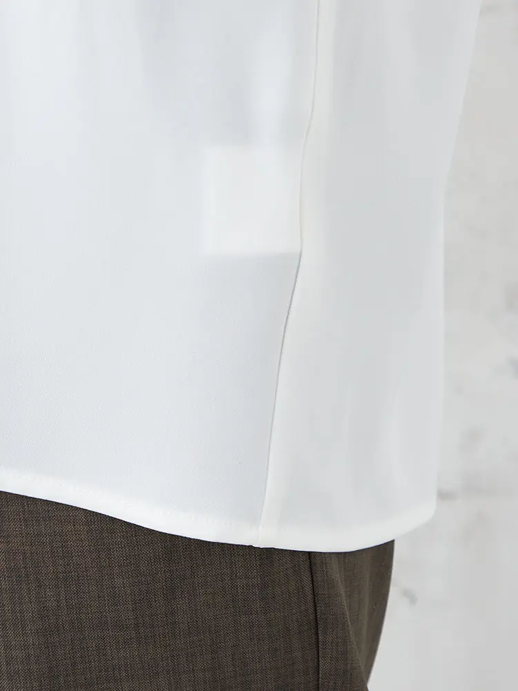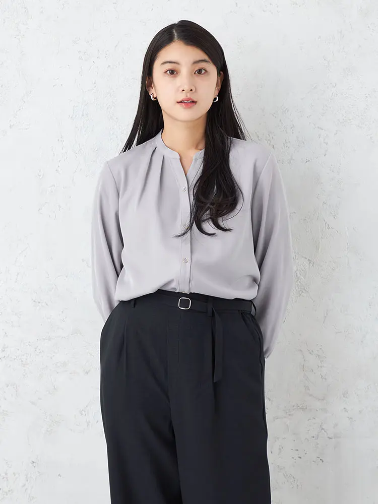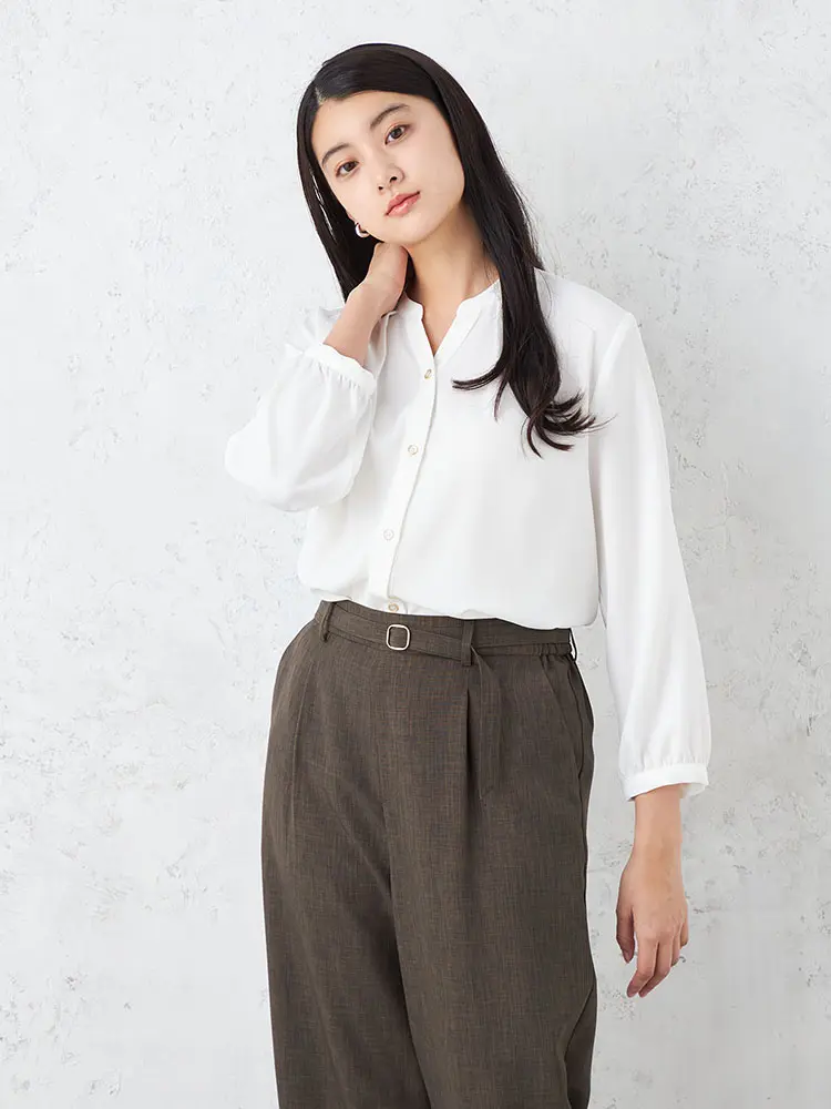 さらりと1枚でも、ジャケットインでも映える定番の前開きシャツブラウス。