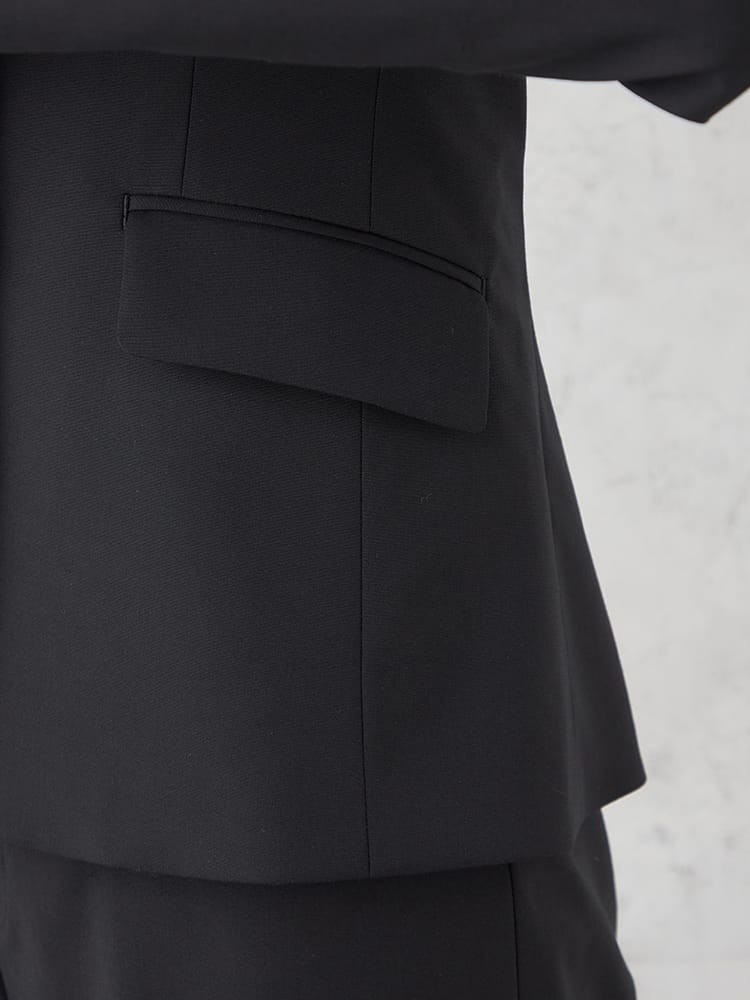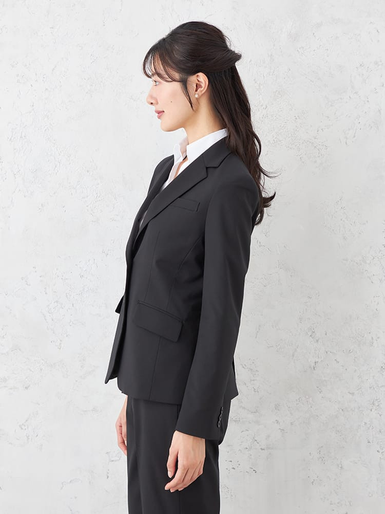 切り込みが1本のセンターベントデザインです。細身でスッキリとしたシルエットが特徴で、快適な着心地を提供します