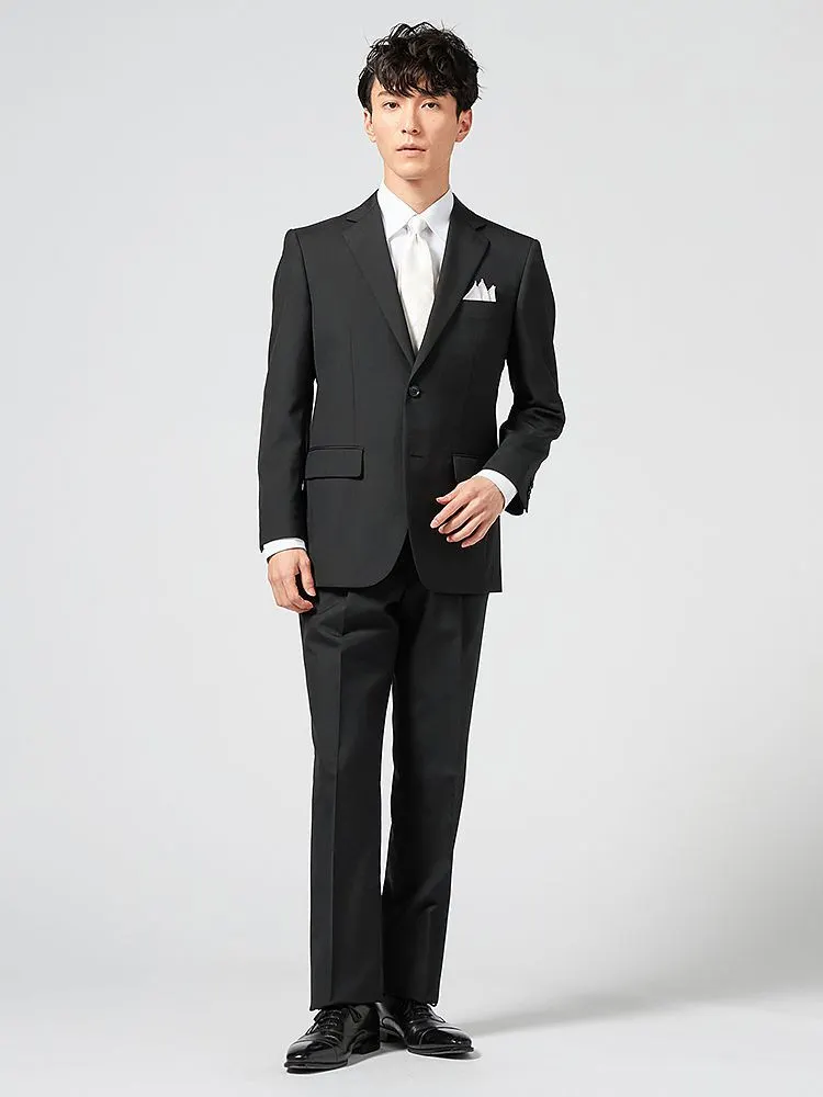 【即納】【WEB限定】フォーマル2つボタン上下ウォッシャブルウエストアジャスター仕様黒無地通年礼服