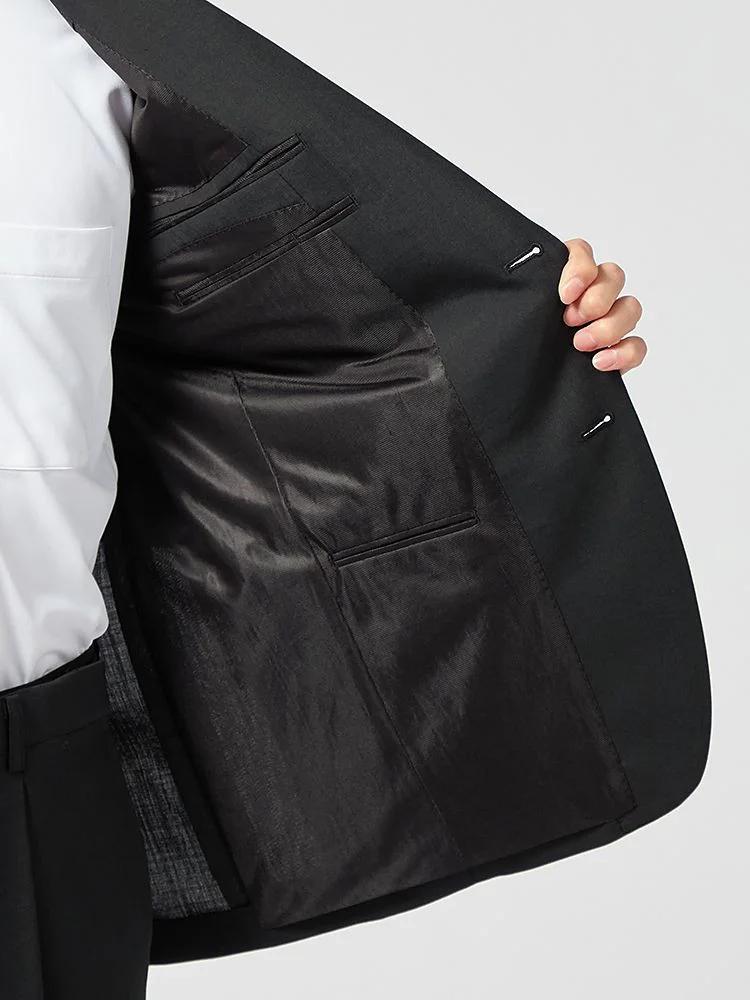 切り込みが1本のセンターベントデザインです。細身でスッキリとしたシルエットが特徴で、快適な着心地を提供します