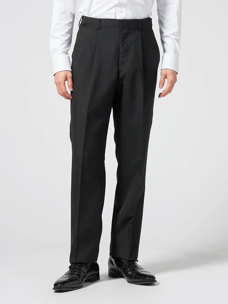 [礼服]【ウエストアジャスター仕様】2つボタンサマーフォーマルワンタック黒無地カンサイ・ヤマモト春夏礼服【定番】