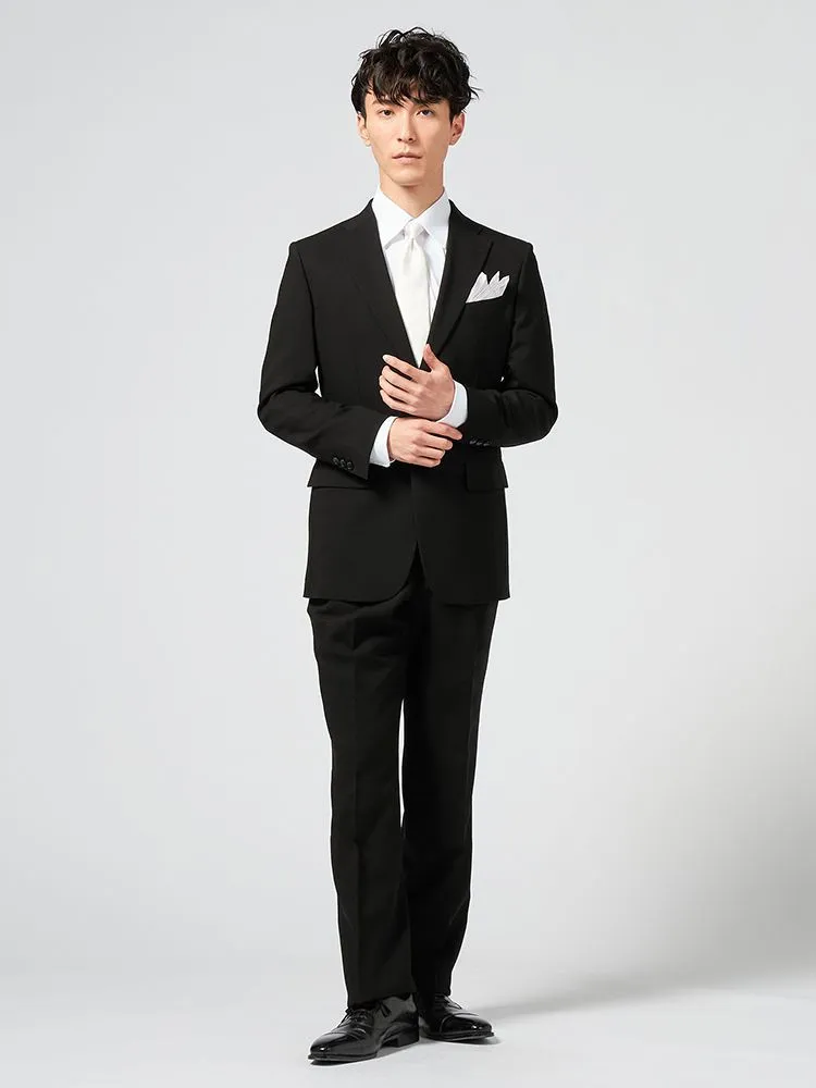 • [礼服]【ウエストアジャスター仕様】2つボタン サマーフォーマル ワンタック 黒無地 カンサイ・ヤマモト 春夏【定番】 A1203820239