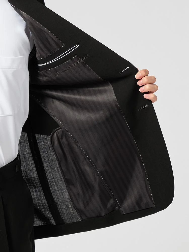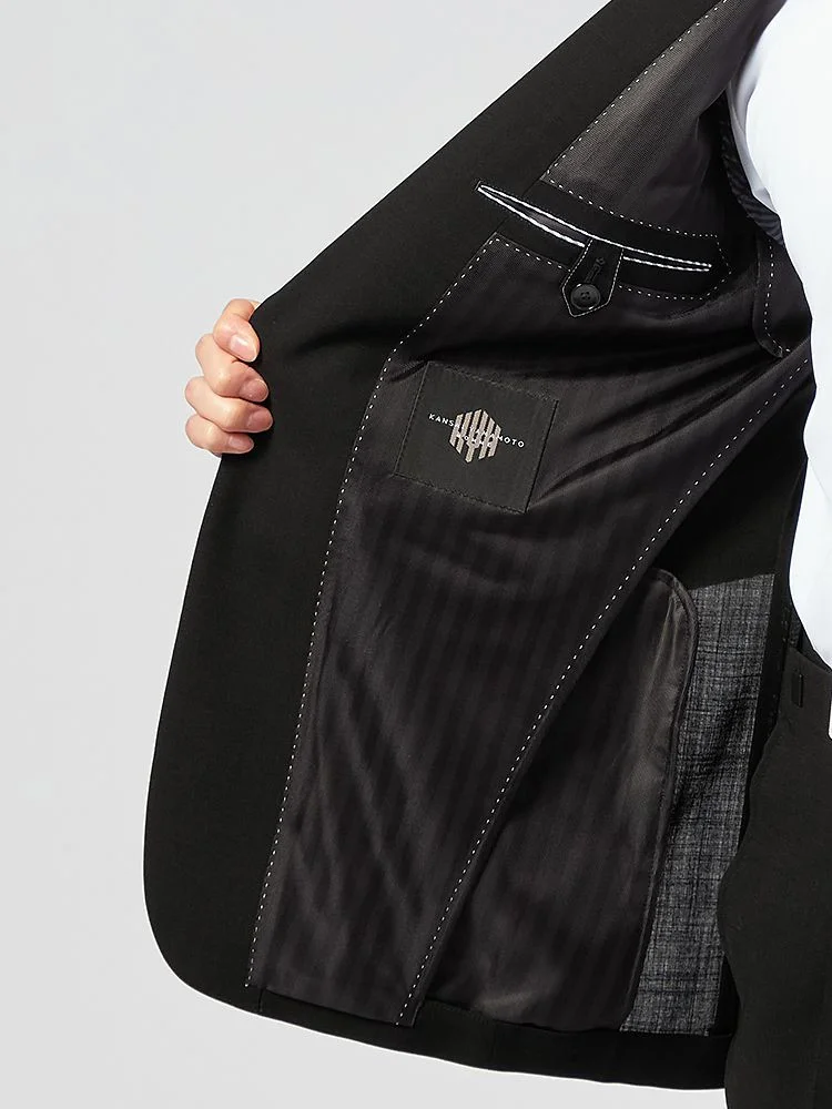 切り込みが1本のセンターベントデザインです。細身でスッキリとしたシルエットが特徴で、快適な着心地を提供します