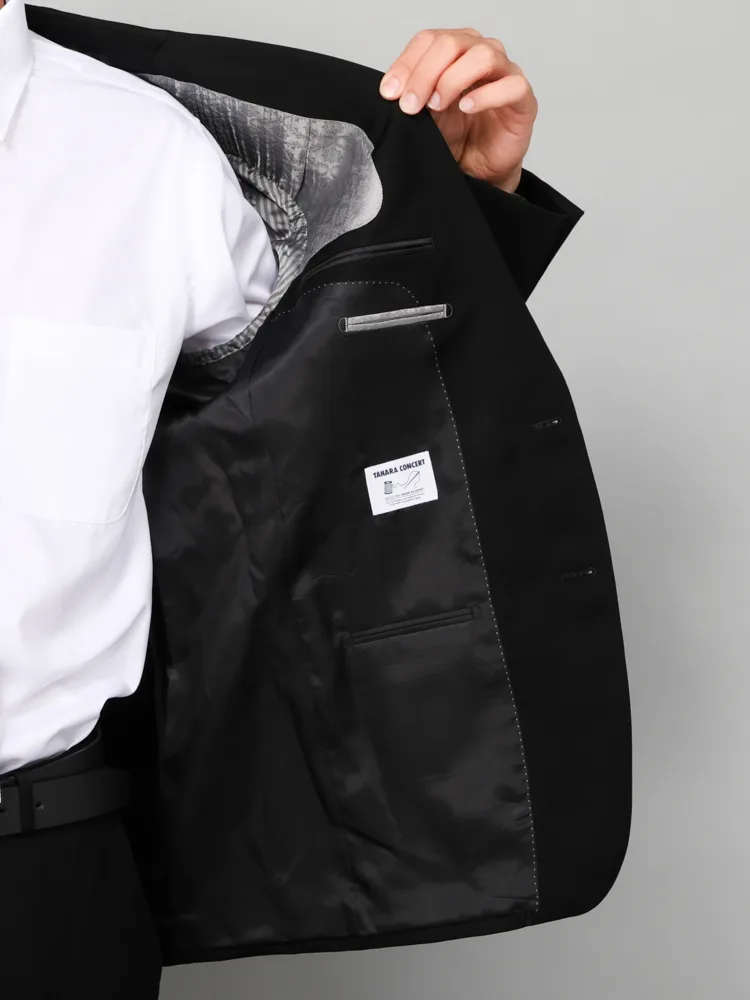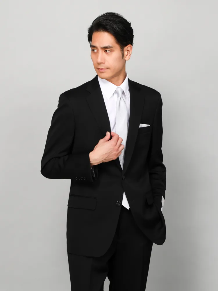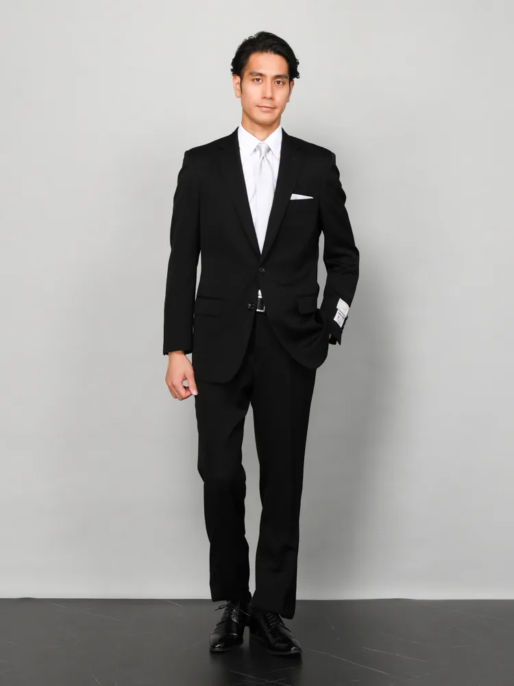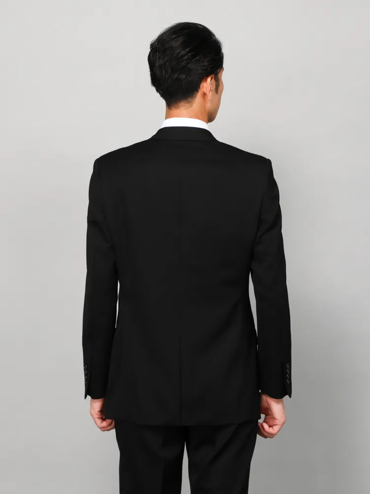 [礼服]【ウエストアジャスター仕様】フォーマル2つボタンウール混素材ブラック無地nero通年礼服【スリムデザイン】