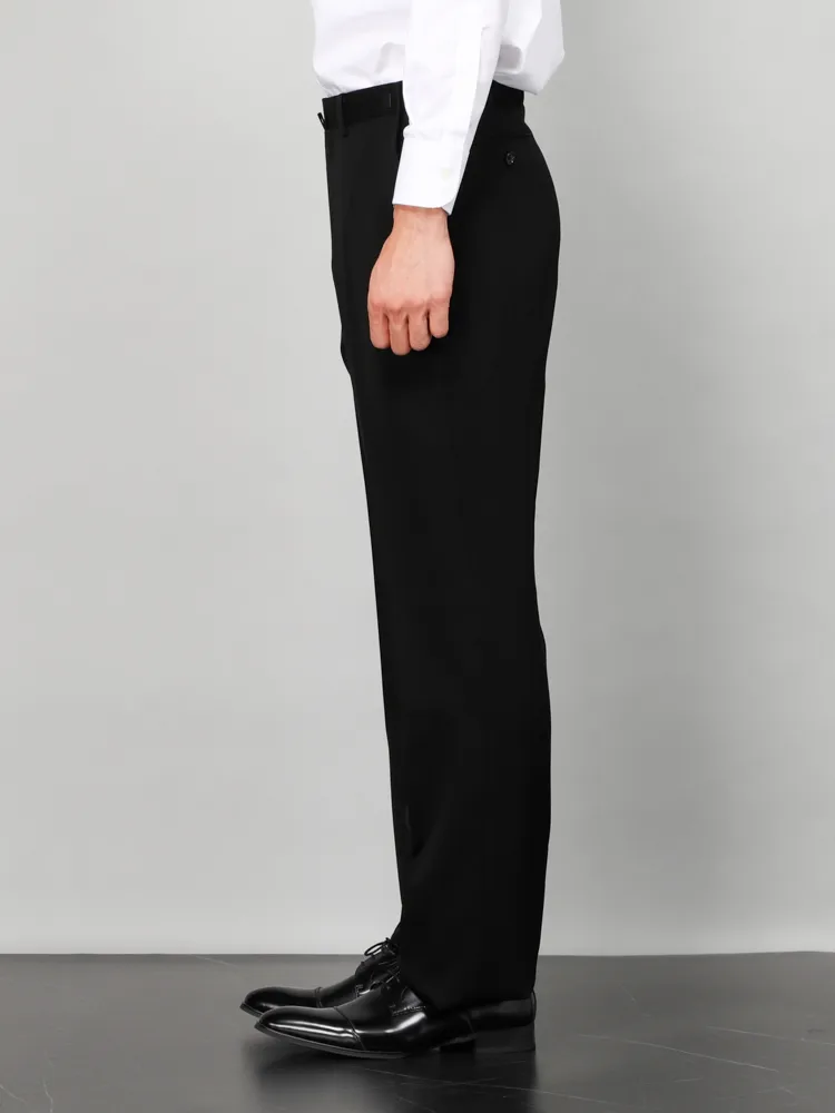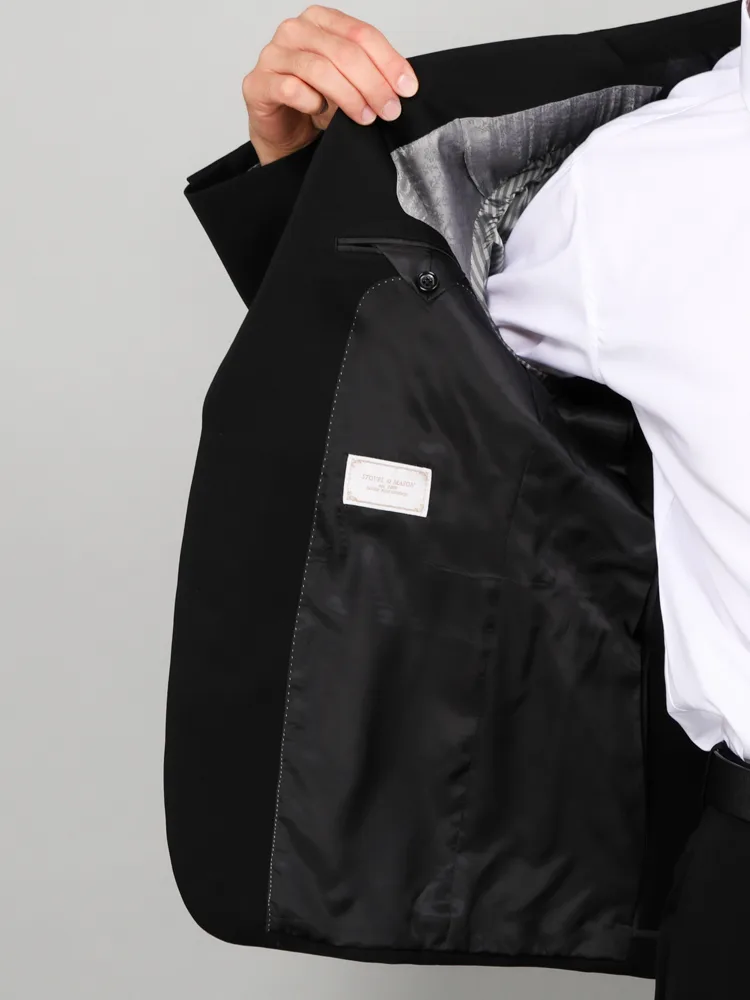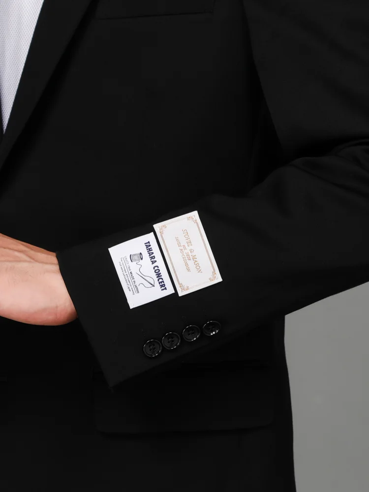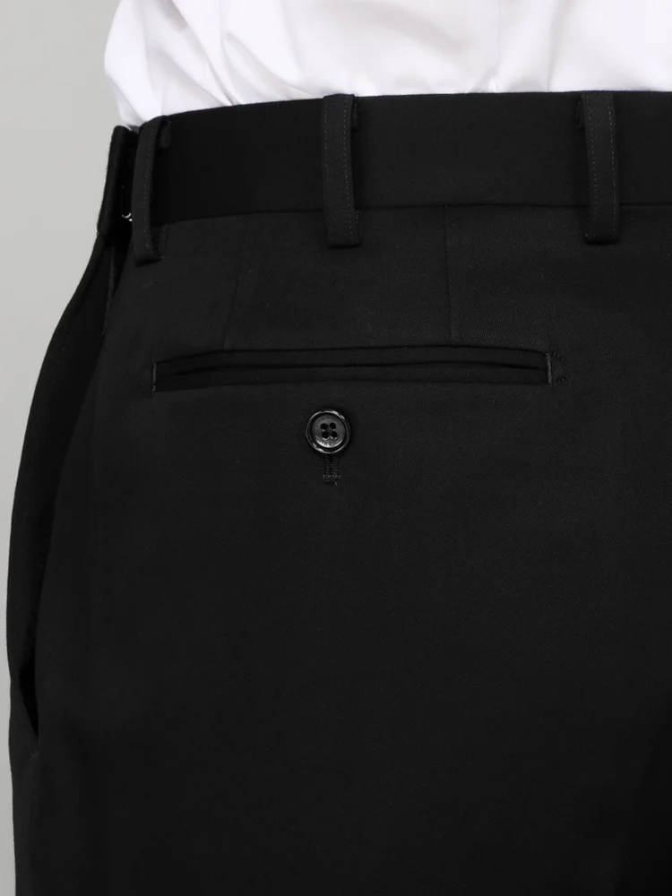 [礼服]【ウエストアジャスター仕様】フォーマル 2つボタン ウール混 黒無地 STOVEL&MASON 通年 礼服【定番】
