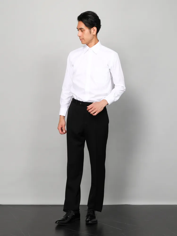 パンツの腰回りに生地の折り込みがなく、スッキリとしたシルエットを実現します。シンプルで洗練された印象を与え、すっきりとした着こなしが可能です。