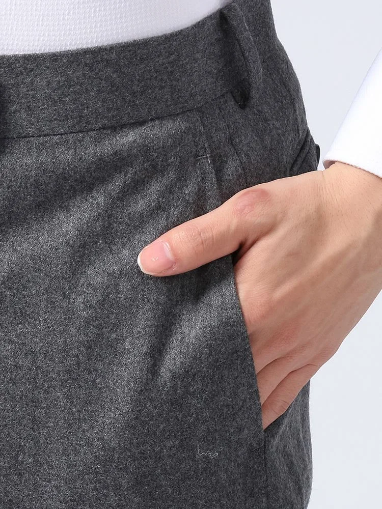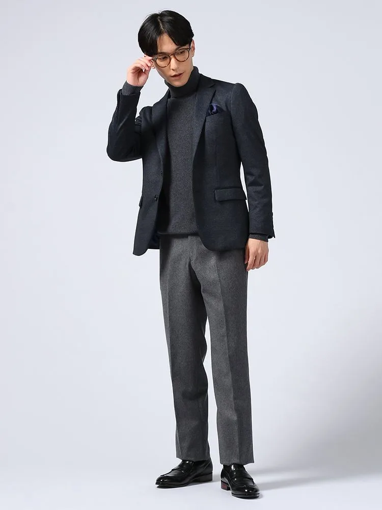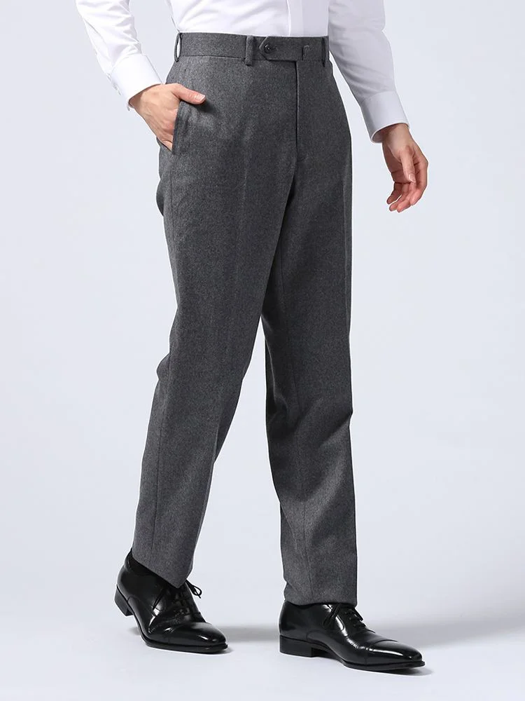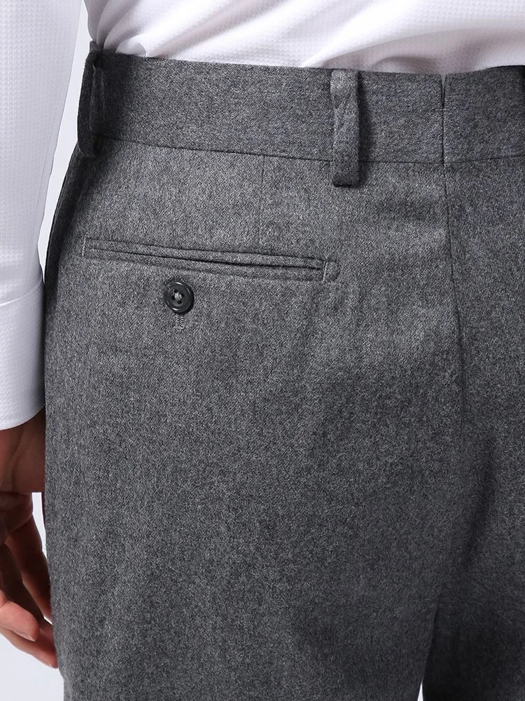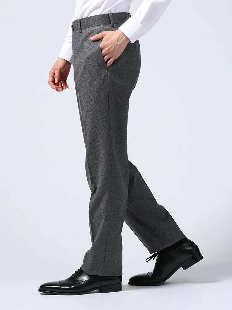 秋冬シーズンにぴったりな起毛感のあるウールフランネルを使用した、ノータック仕上げのスラックス。