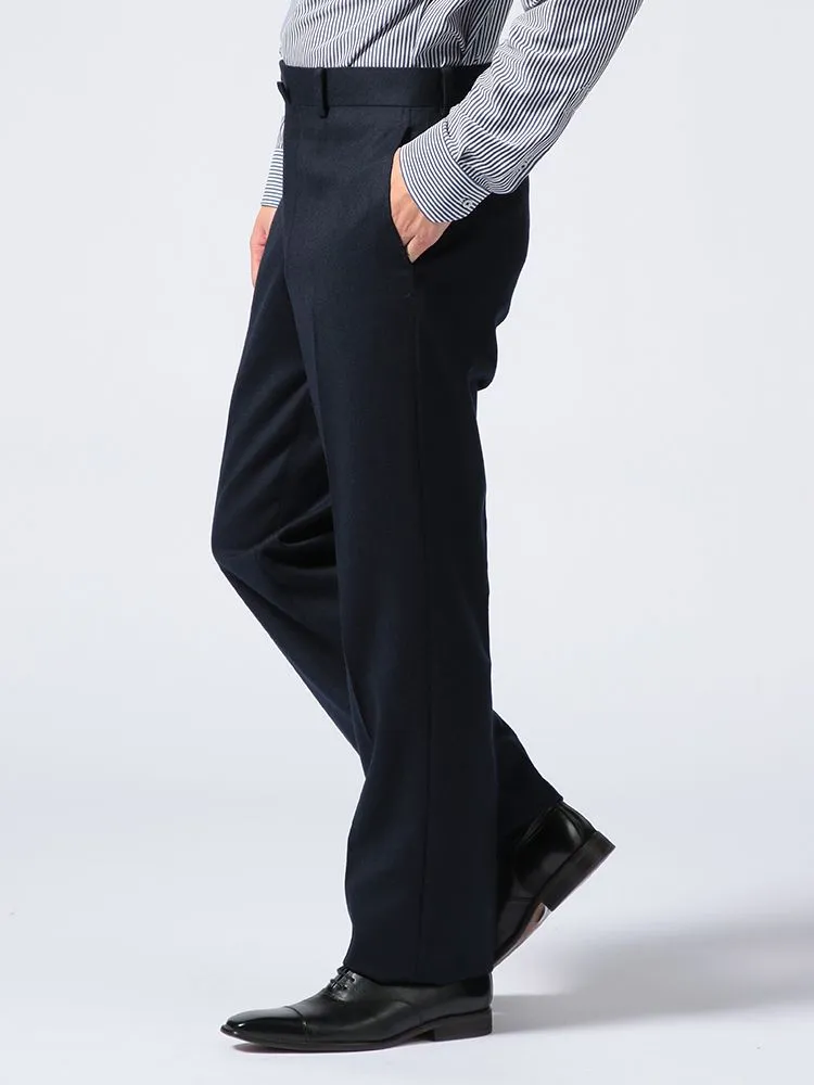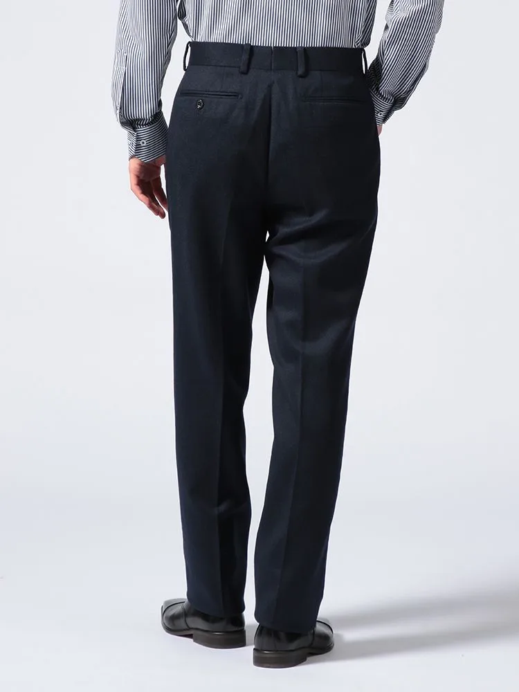 【ノータック】パンツ ウールフランネル スラックス ストーベルアンドメイソン 秋冬(ネイビー)