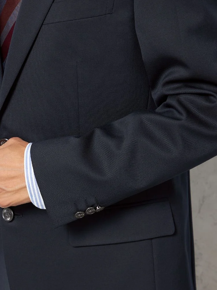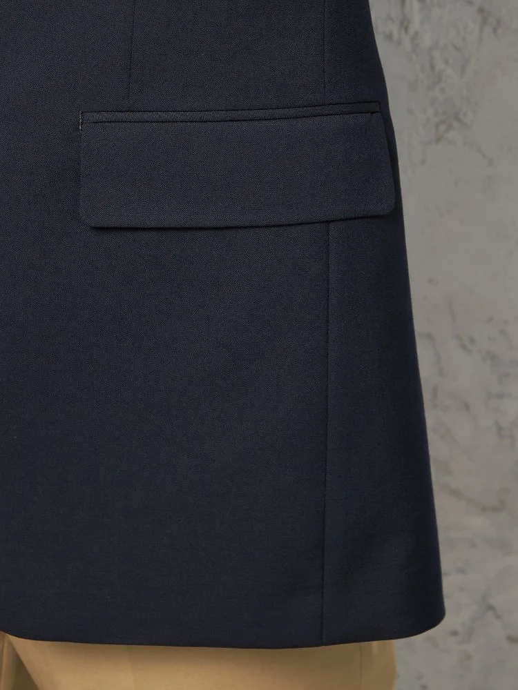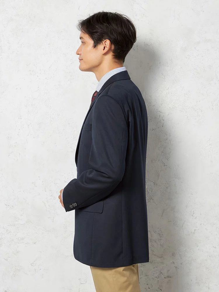 通年で着用できる生地を使用したベーシックなネイビーのジャケット。