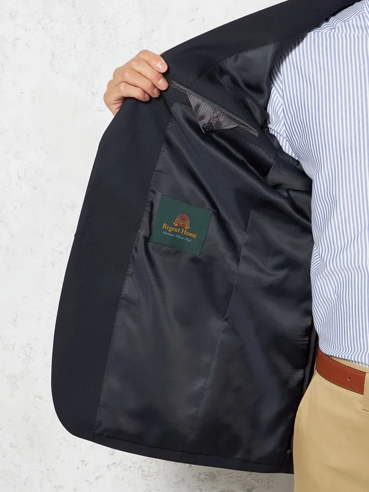 【ウール混】ジャケット 2つボタン 紺ブレザー 背抜き 無地 リージェントハウス 通年【定番】