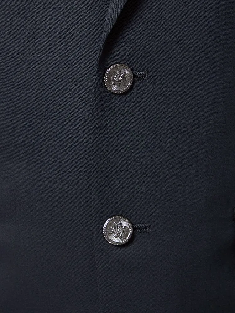 【ウール100%】ジャケットメタル2つボタンブレザー【イタリアREDA社製】通気性耐シワ性紺無地