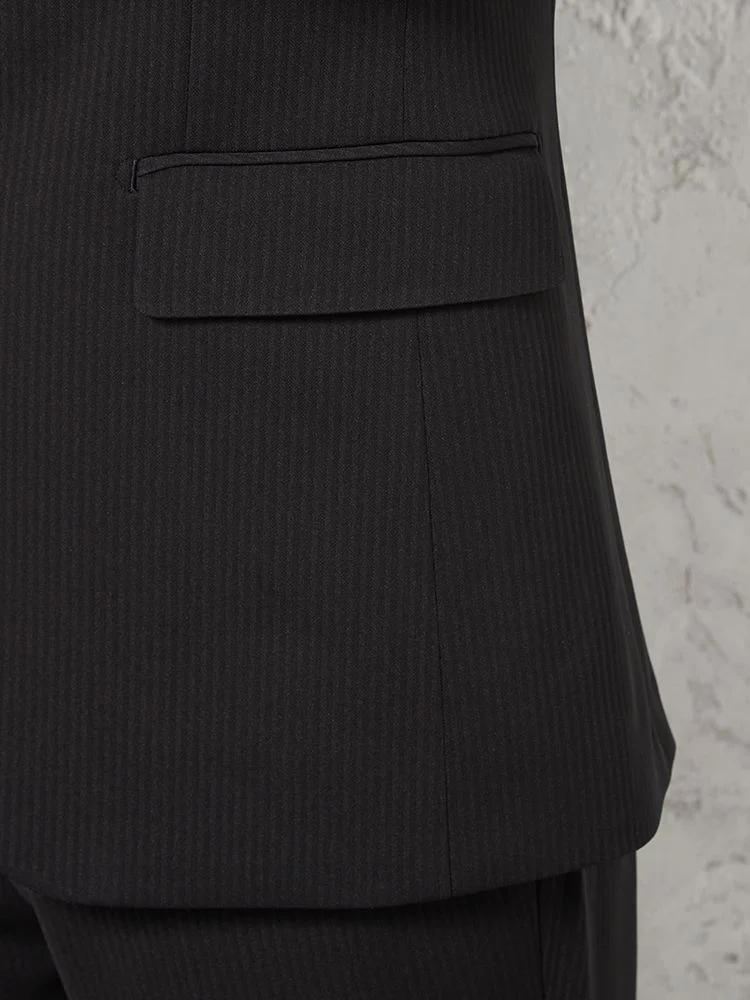 切り込みが1本のセンターベントデザインです。細身でスッキリとしたシルエットが特徴で、快適な着心地を提供します