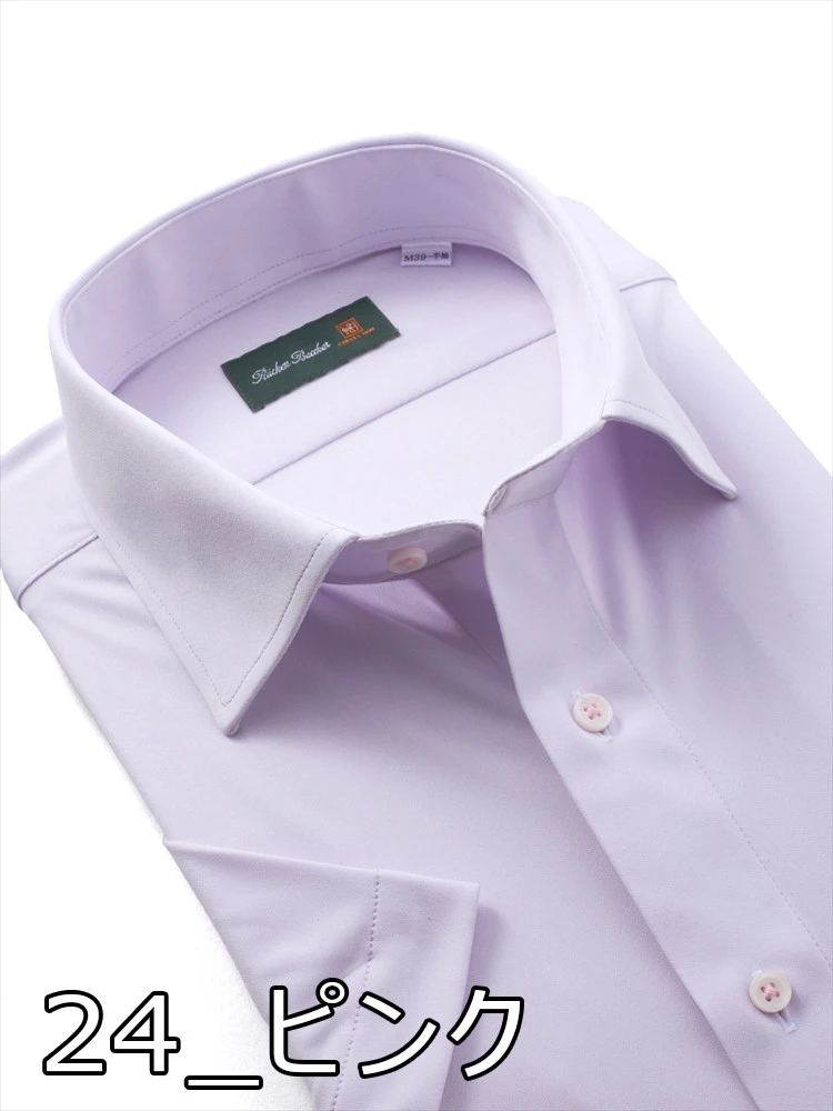 【抗菌】ニットシャツ 半袖 ストレッチ ワイド ワイシャツ リッケンバッカー 春夏(ピンク)