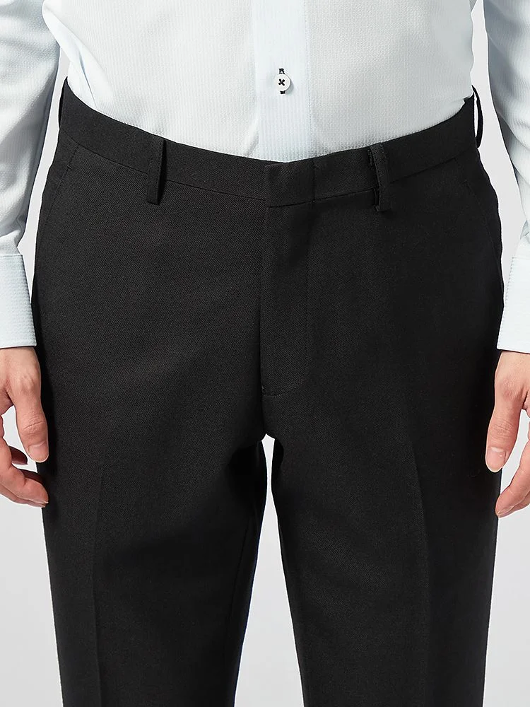 【ウォッシャブル】パンツスラックスノータック防しわリッケンバッカーブラック