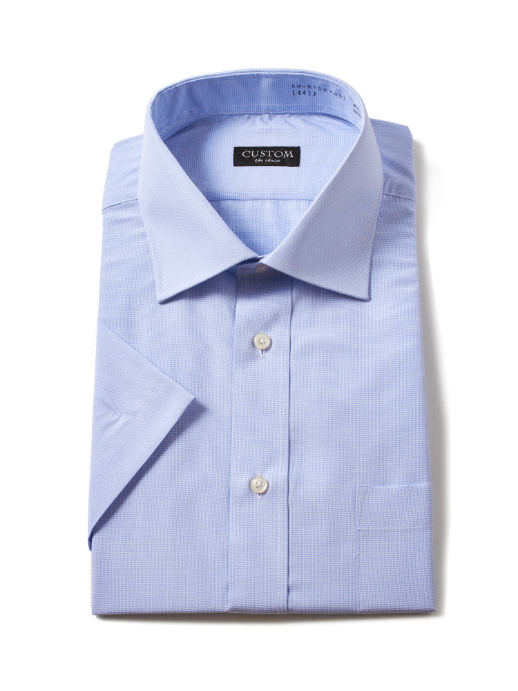形態安定加工を施しお手入れ簡単な半袖ワイシャツ。