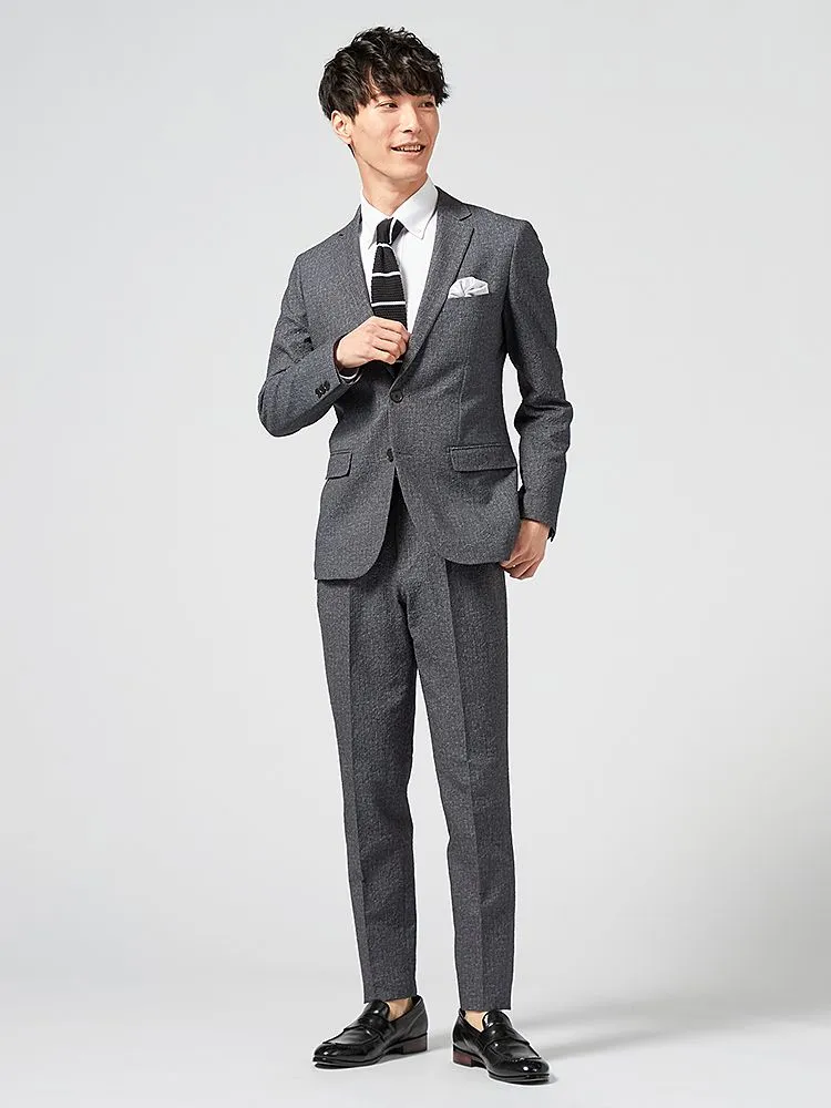【即納】スーツ2つボタン【WEB限定】上下ウォッシャブルM.グレー小柄3シーズン対応