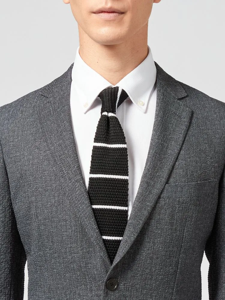 カジュアルなニットタイと合わせてもさまになります。
