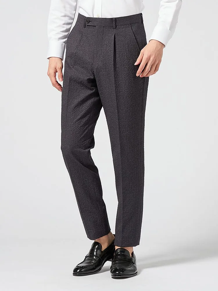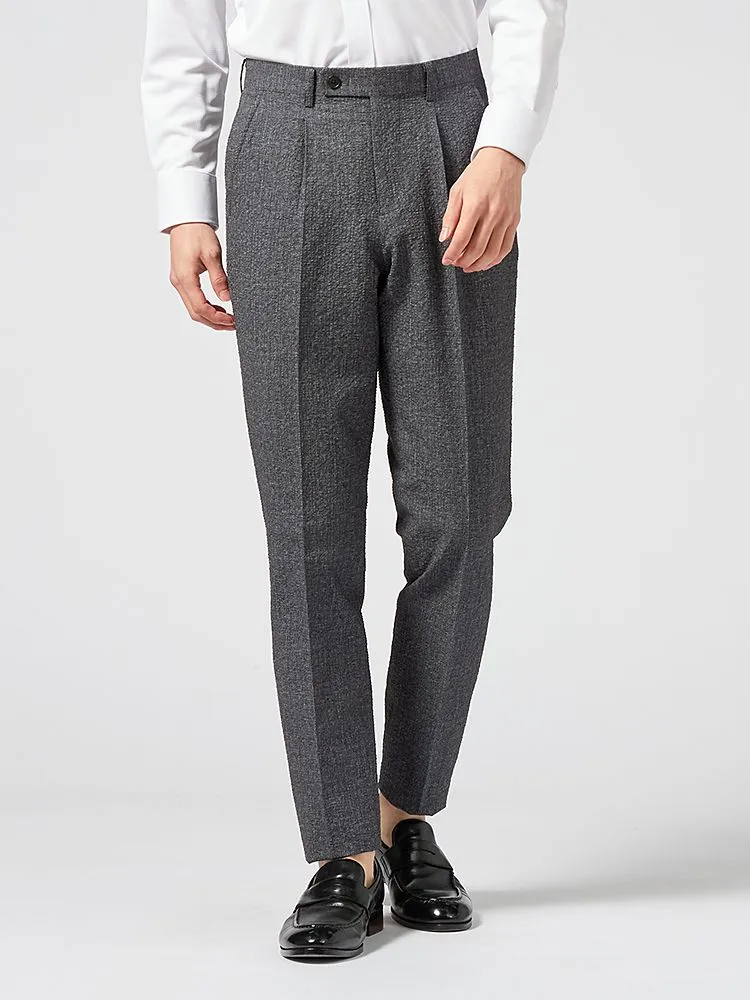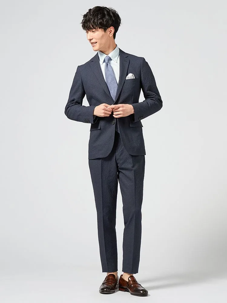 独特の風合いの生地が、ビジネススタイルにさりげないセンスをオンしてくれるスーツ。