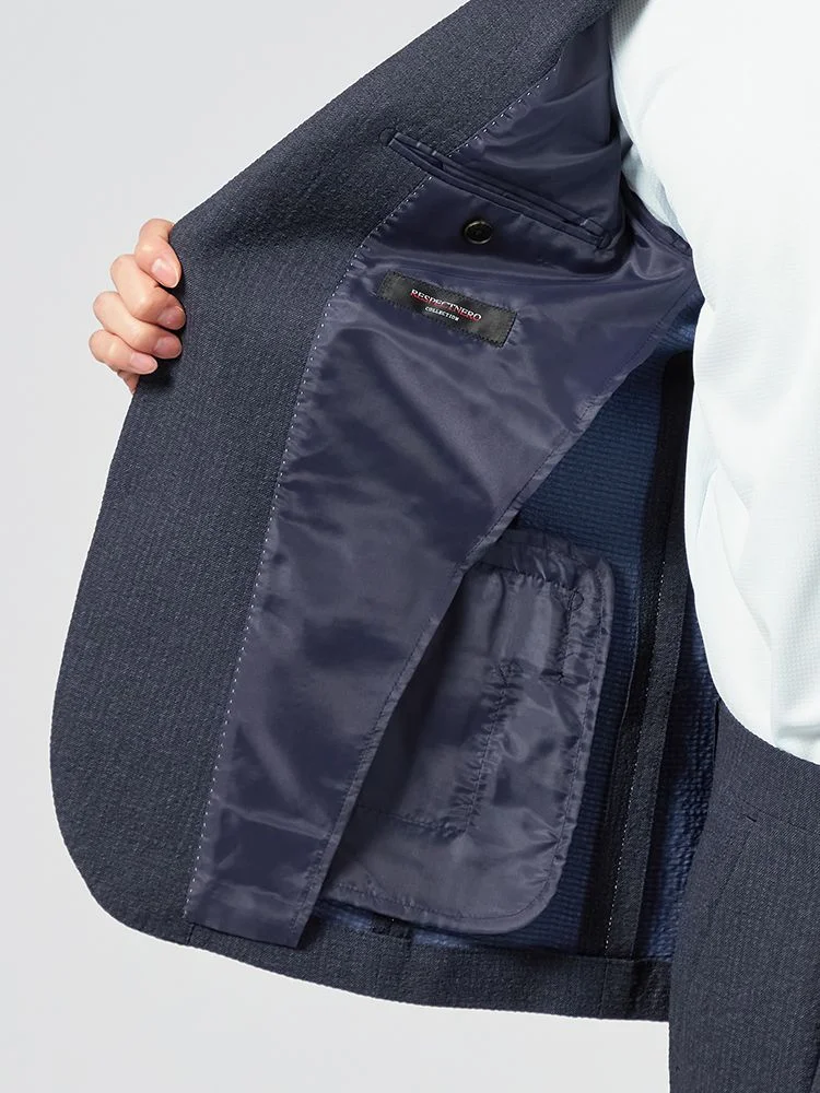 【パンツウォッシャブル】スーツ段返り3つボタンリネンライクライトフィールドライタッチ軽量ネービーリッケンバッカー春夏