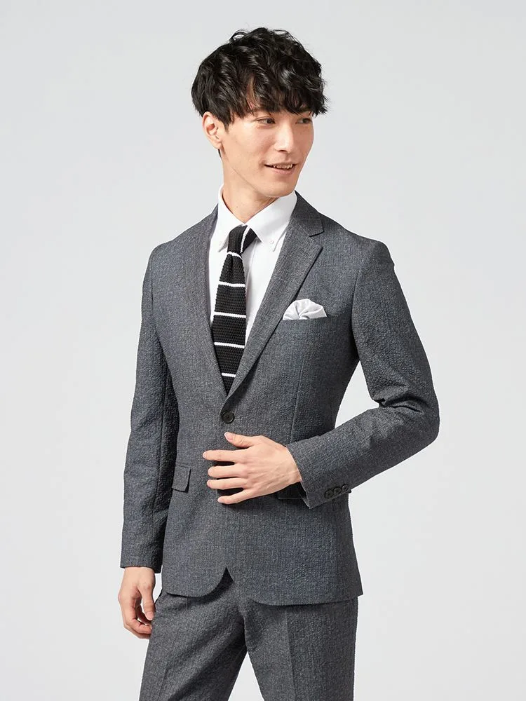 【上下ウォッシャブル】スーツ 2つボタン 軽量 表地ストレッチ素材 ワンタック 織柄無地 nero【i-Suit-アイスーツ-】春夏【スリムデザイン】(M.グレー)