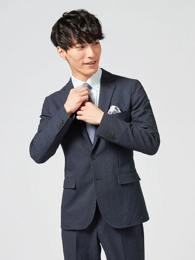 【即納】【WEB限定】スーツ2つボタンネイビーシャドウストライプ上下ウォッシャブル3シーズン対応