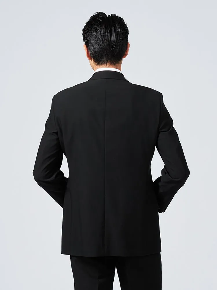 [礼服]【ウエストアジャスター仕様】フォーマル2つボタンウール混素材ブラック無地nero通年礼服【スリムデザイン】