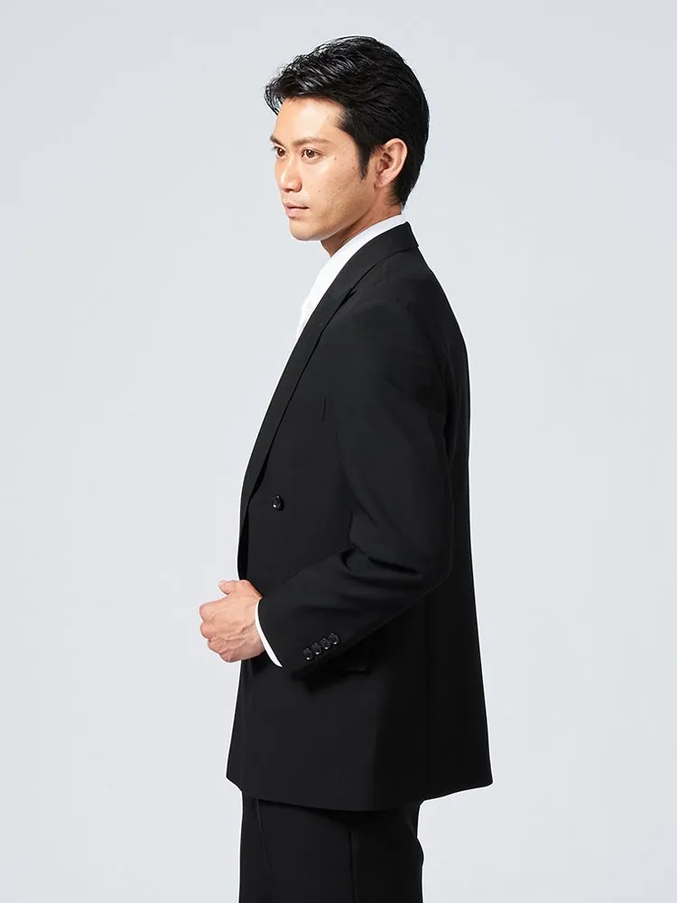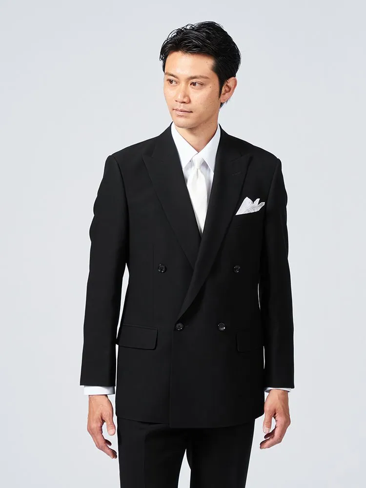 上品な雰囲気を演出するダブルブレストのブラックフォーマルです。