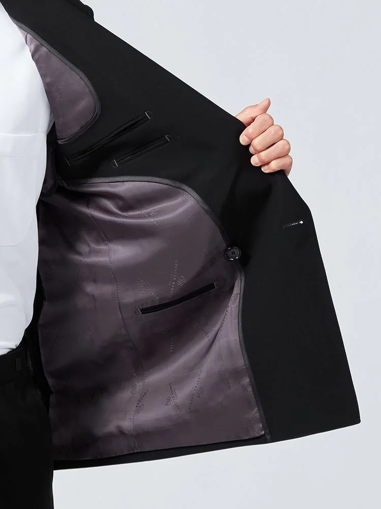 [礼服]【ワンタック】フォーマル2つボタンサマーフォーマルウール混黒無地チェスターバリー春夏礼服
