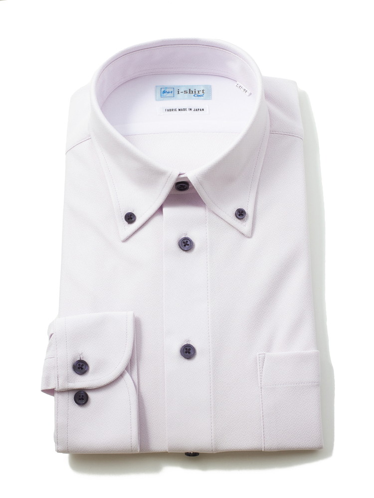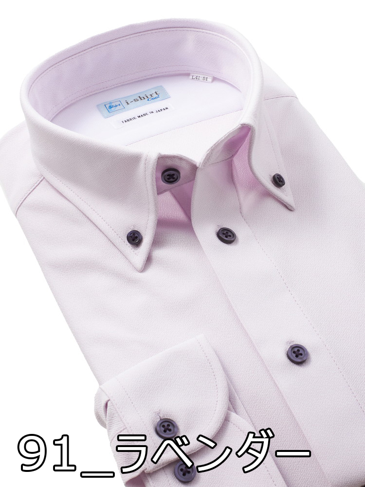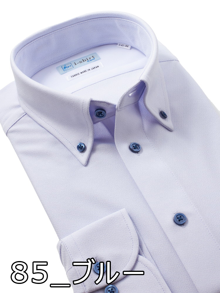 【形態安定】アイシャツ長袖ワイシャツボタンダウン織柄無地i-shirt通年