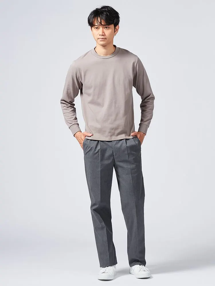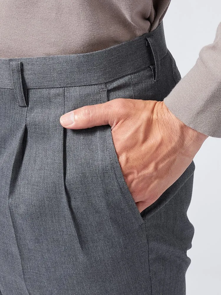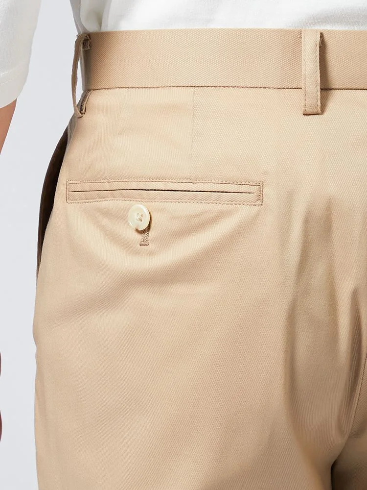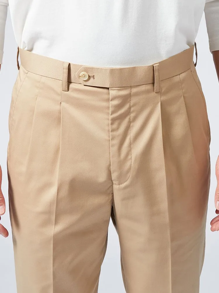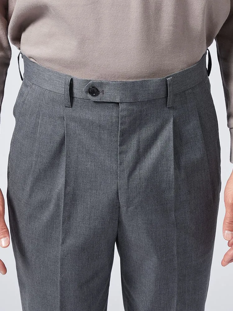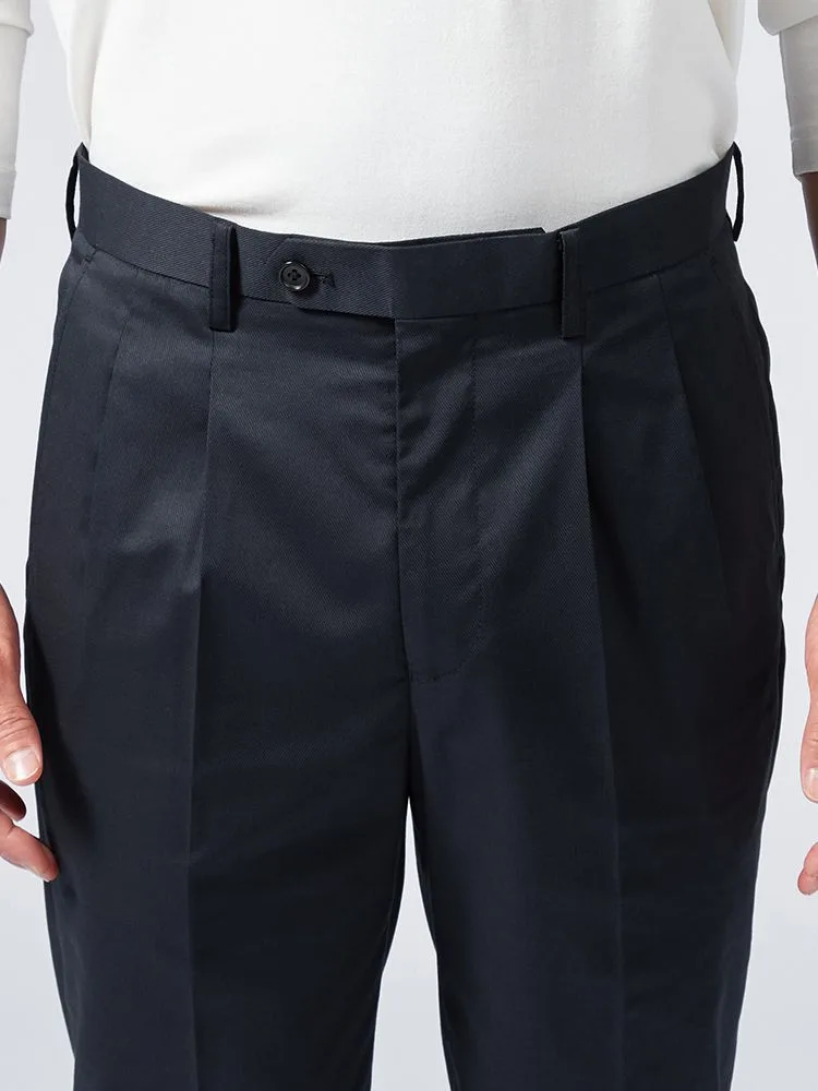 左右に2本ずつ生地の折り込みがあり、ワンタックよりゆとりをもったデザインで、よりリラックスした着心地を提供します