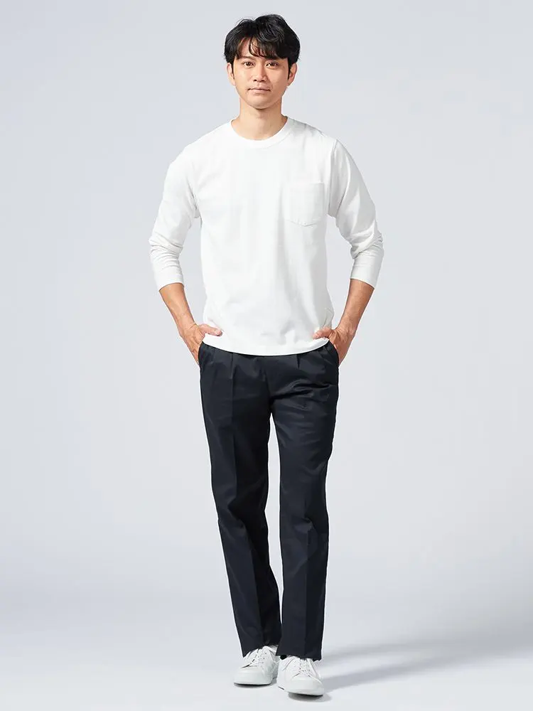 伸びがあって動きやすく、オンオフ兼用で取り入れられる一本です。