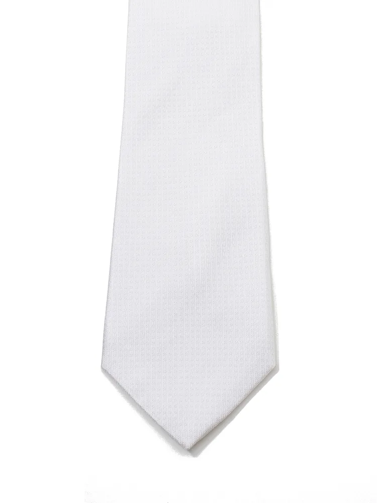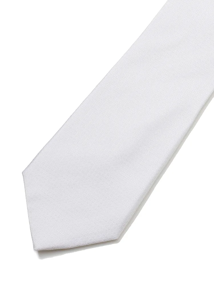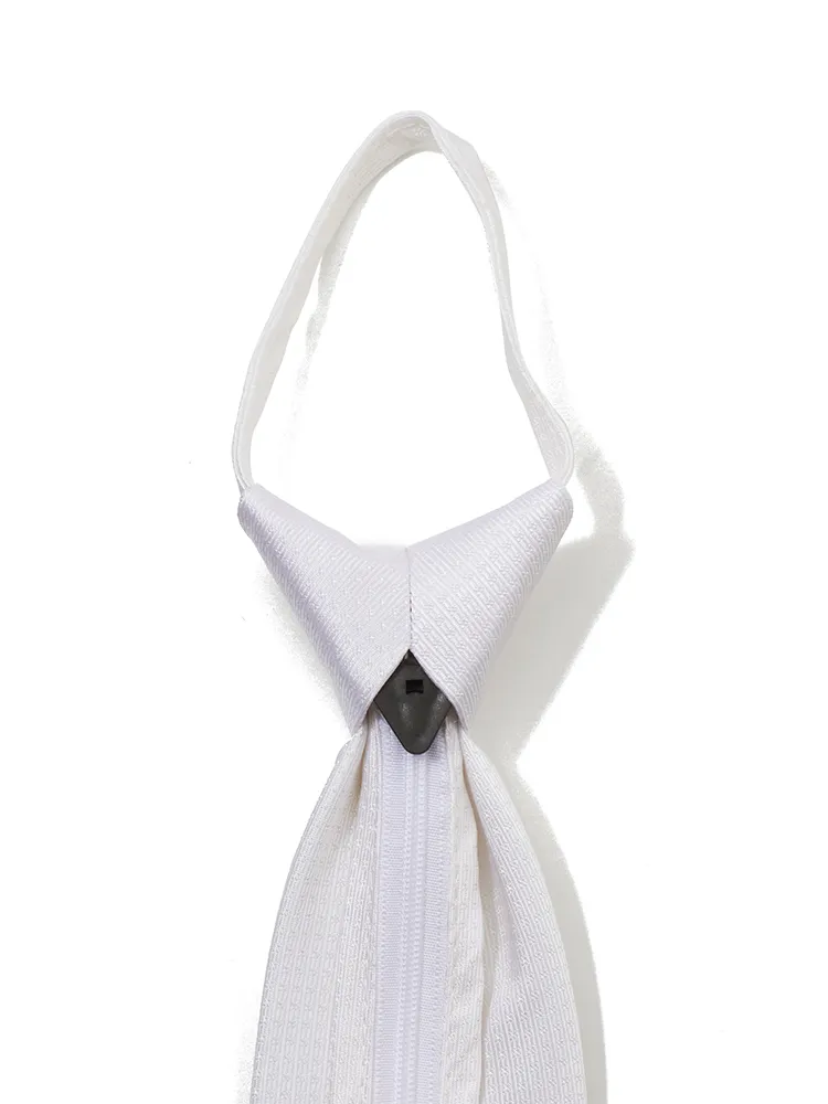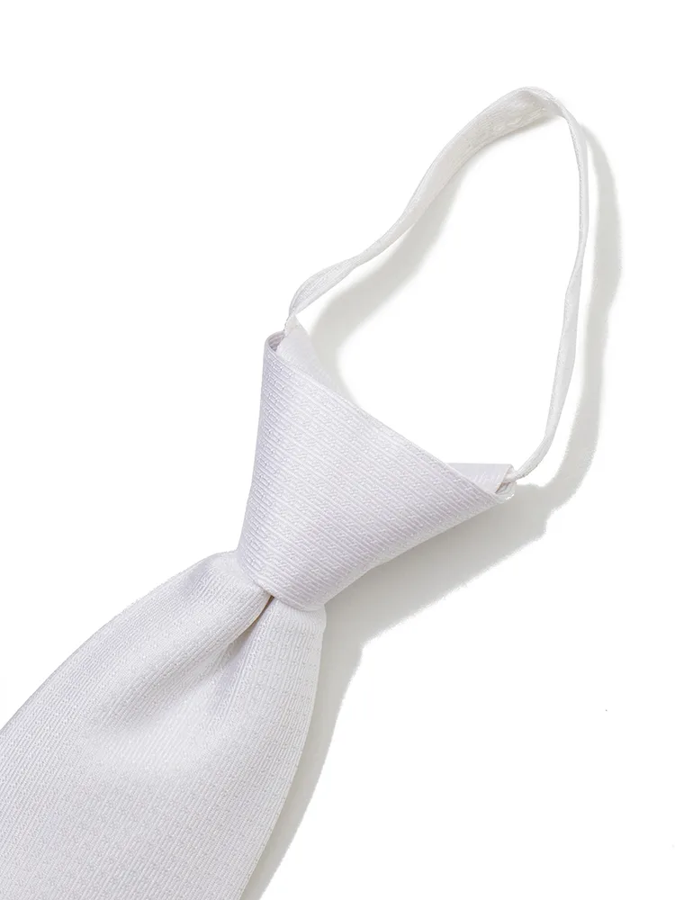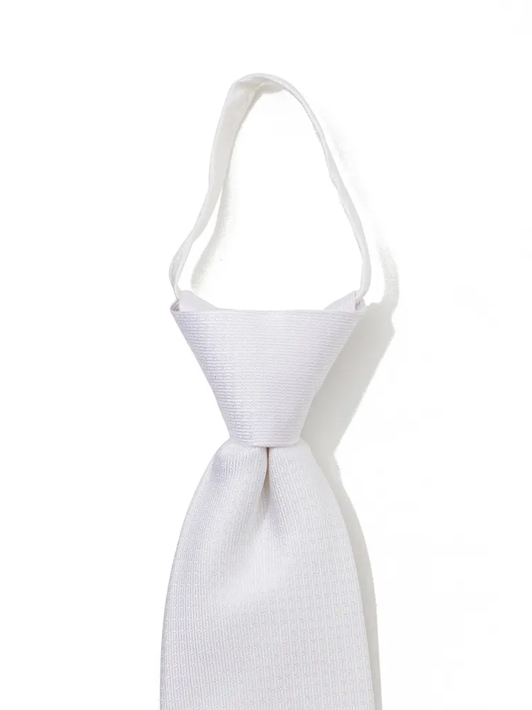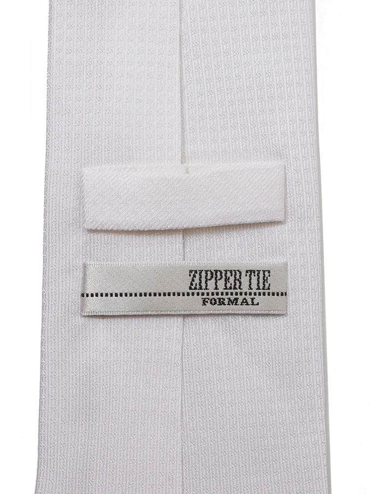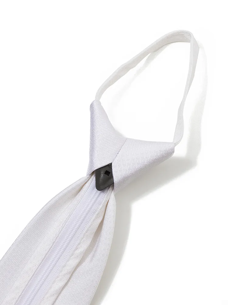 【ジッパータイ】フォーマルネクタイ シルク100% 織柄 白 セレモニー 礼装 通年