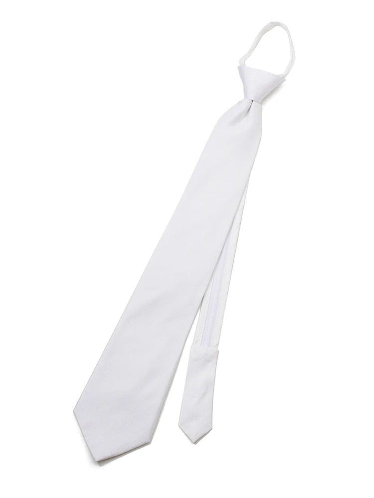 • 【ジッパータイ】フォーマルネクタイ シルク100% 織柄 白 セレモニー 礼装 通年 1512774306